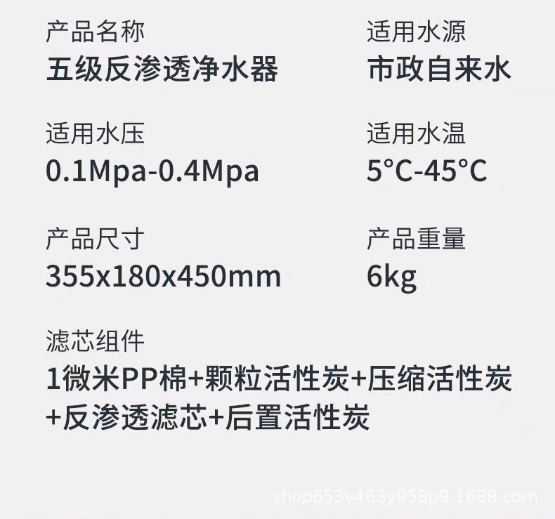 정수기 가정용 RO 역삼 투 직접 식수 청정기 600G 수돗물 필터 탈색 분말