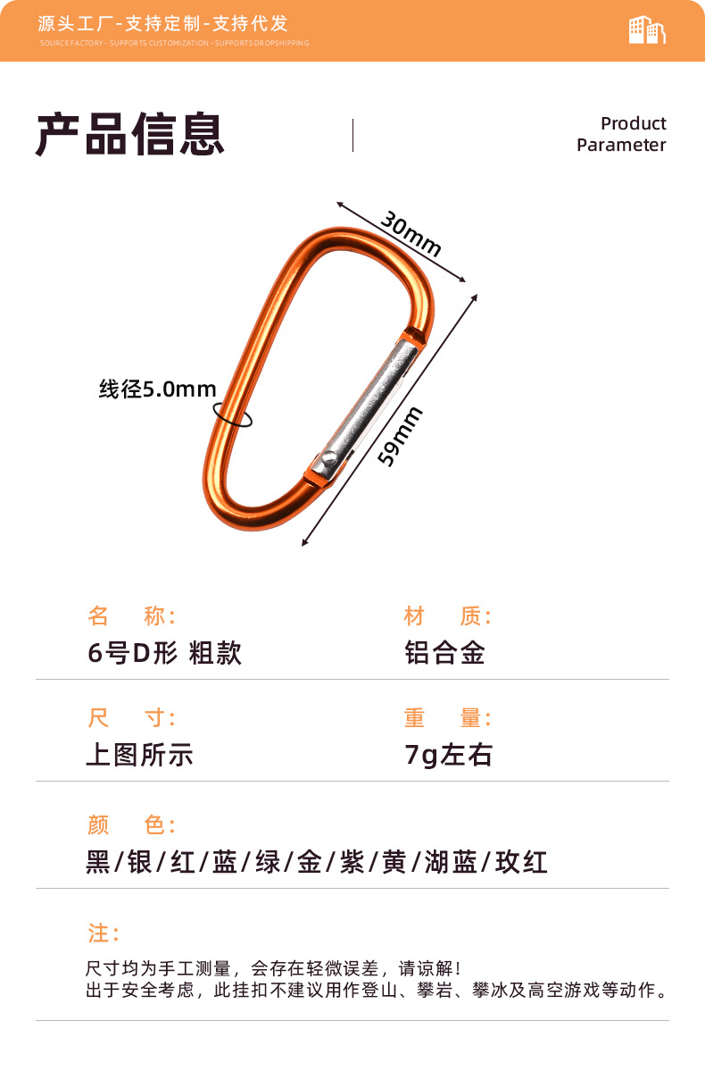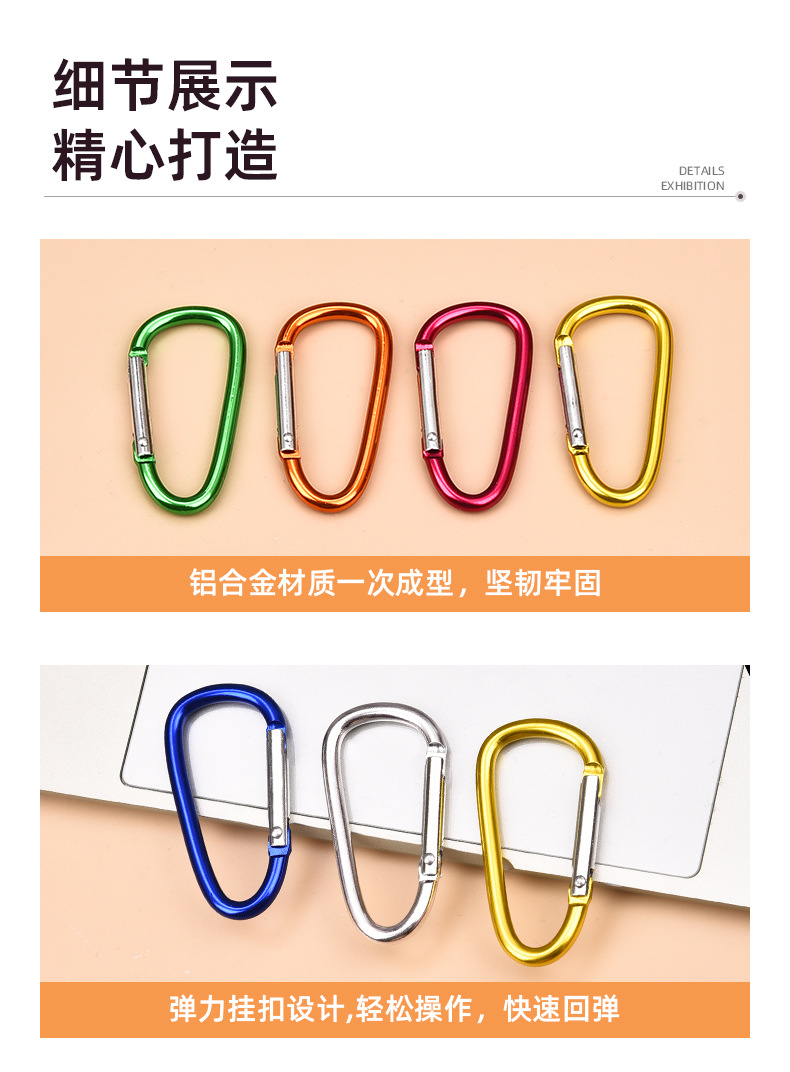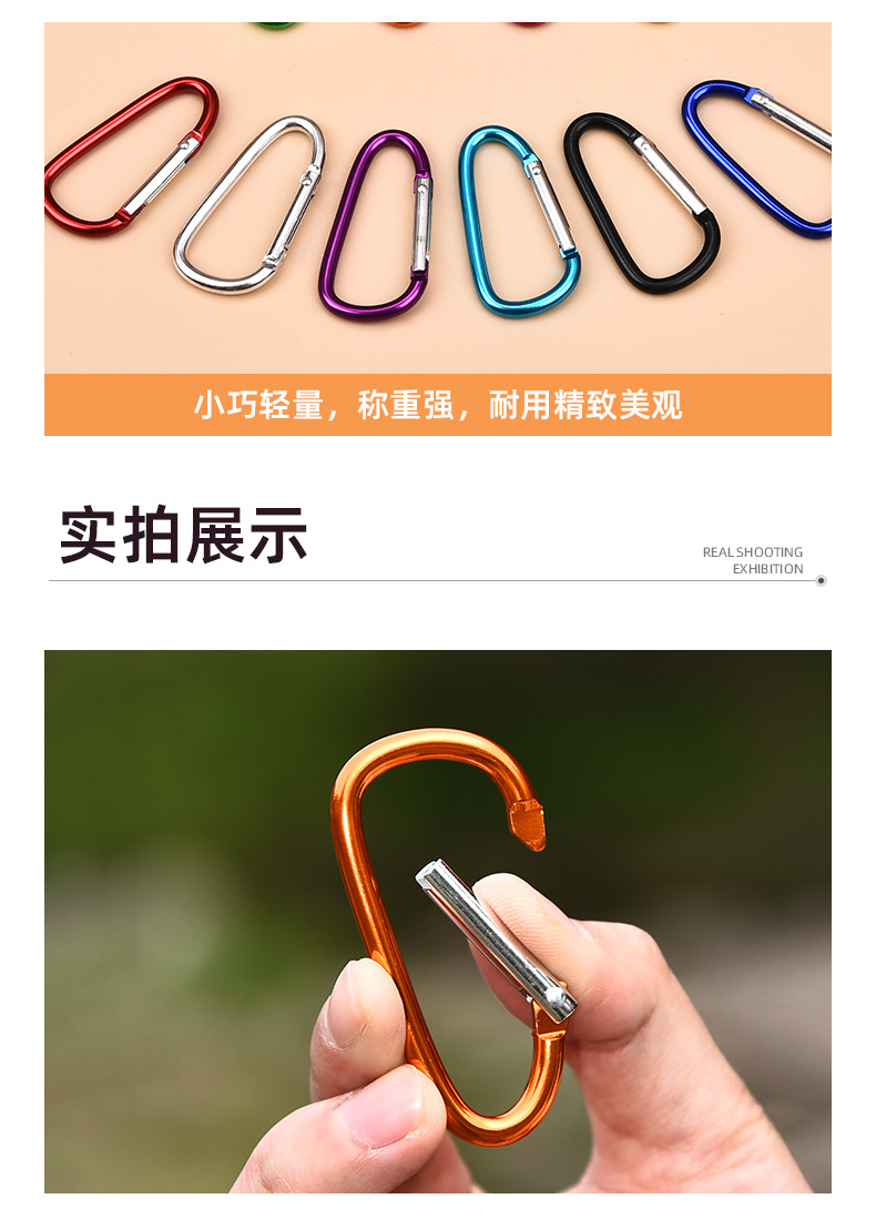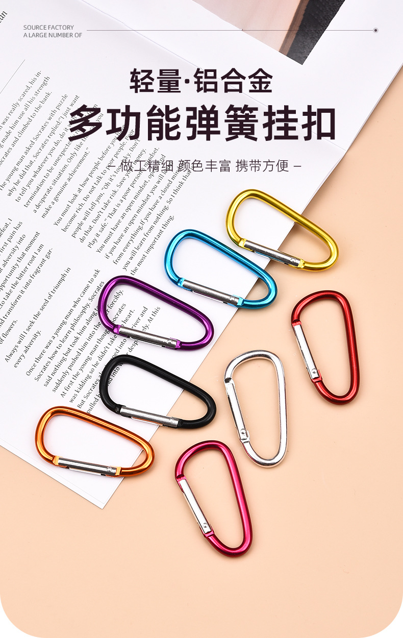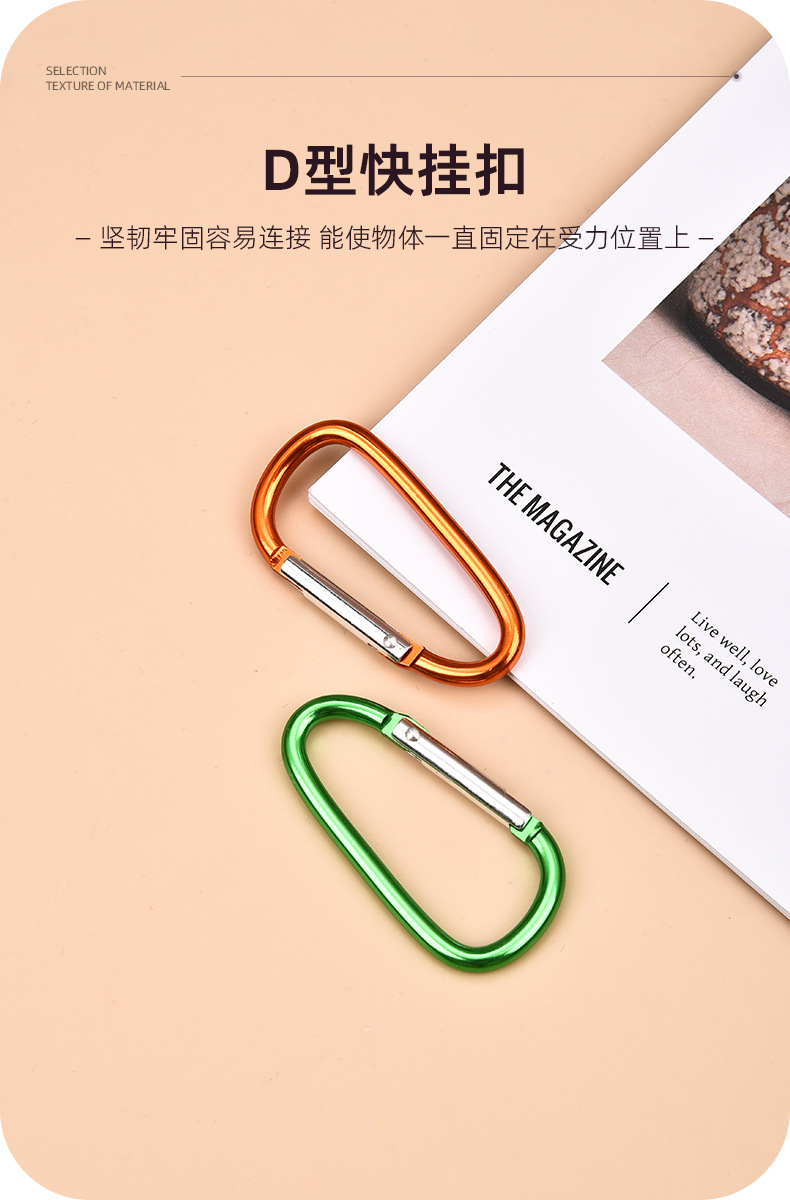 새로운 6호 D형 등산용 버클, 중형 알루미늄 합금 의류 걸이용 버클, DIY 열쇠고리, 야외 캠핑 배낭 걸이용 고리