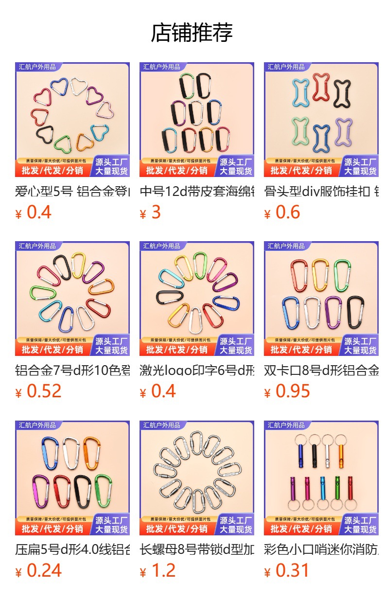 새로운 6호 D형 등산용 버클, 중형 알루미늄 합금 의류 걸이용 버클, DIY 열쇠고리, 야외 캠핑 배낭 걸이용 고리스토어 가기