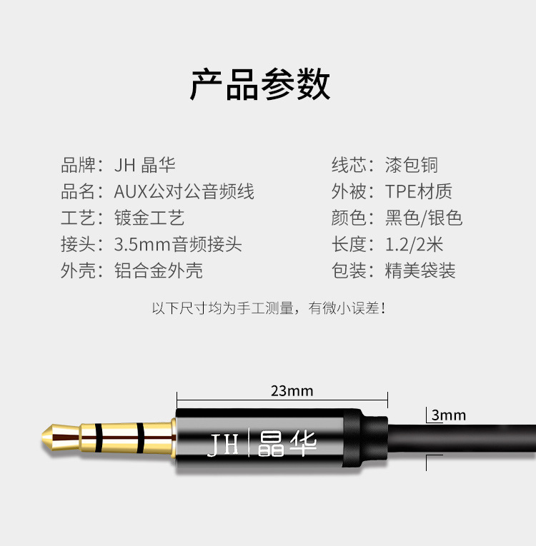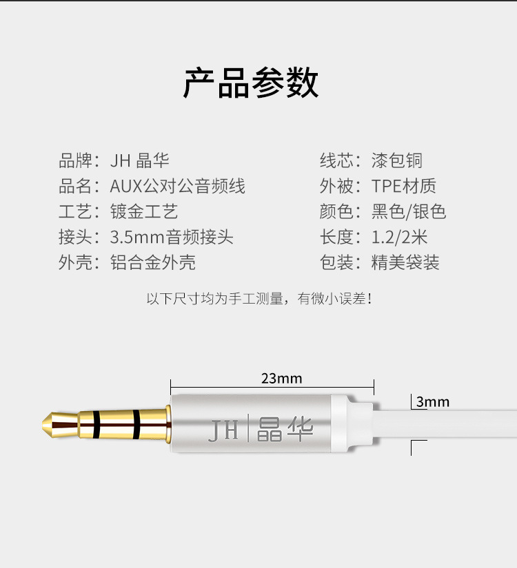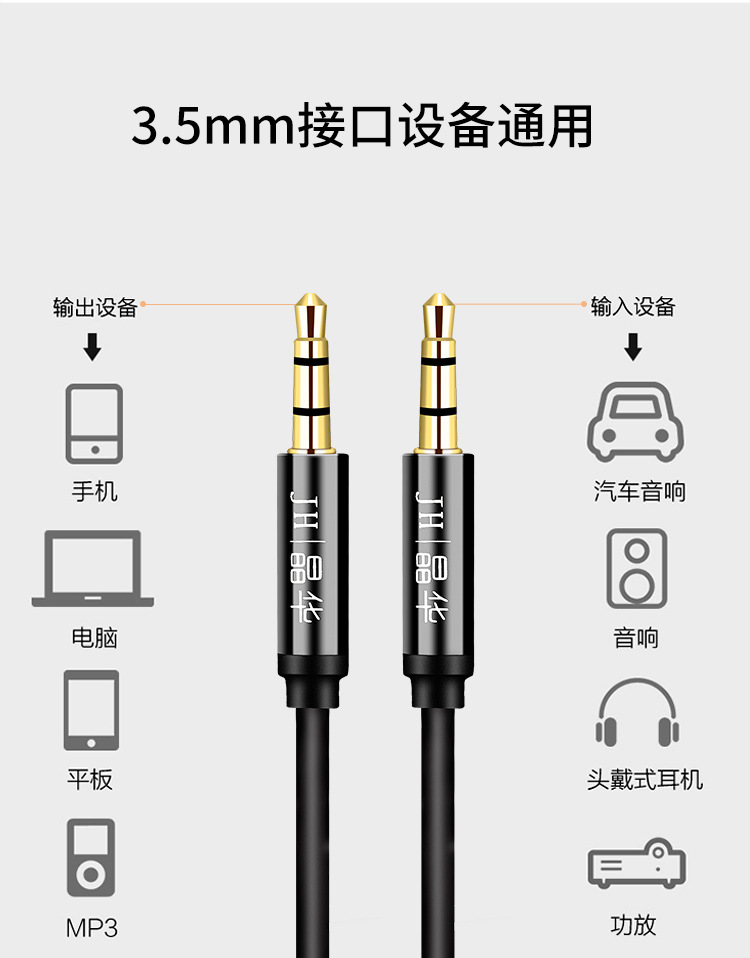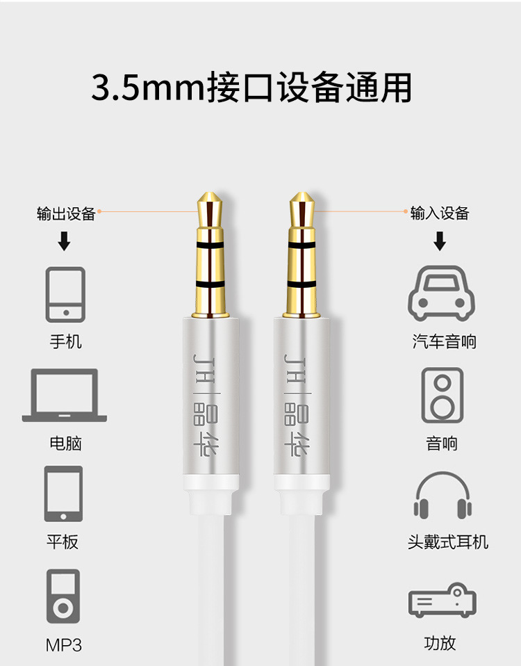 Jinghua aux 오디오 라인 더블 도킹 3.5mm 오디오 라인 자동차 AV 오디오 헤드셋 확장 라인 스피커 라인스토어 가기