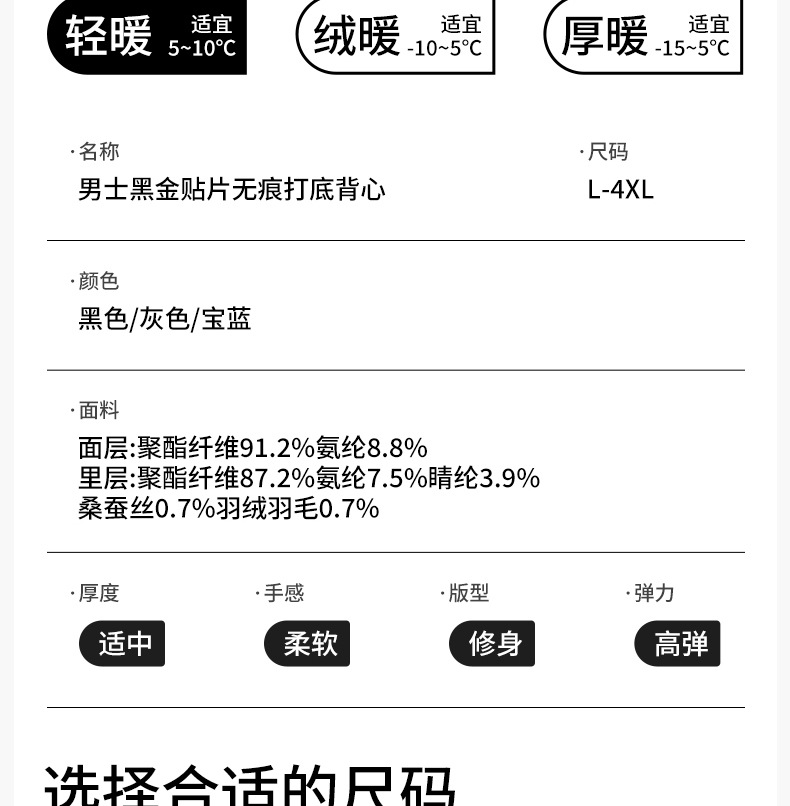 란도르 다운 실크 블랙 골드 보온 조끼 남성용 2025 이너웨어 발열 무봉제 베이스 레이어 외출복으로도 착용 가능스토어 가기