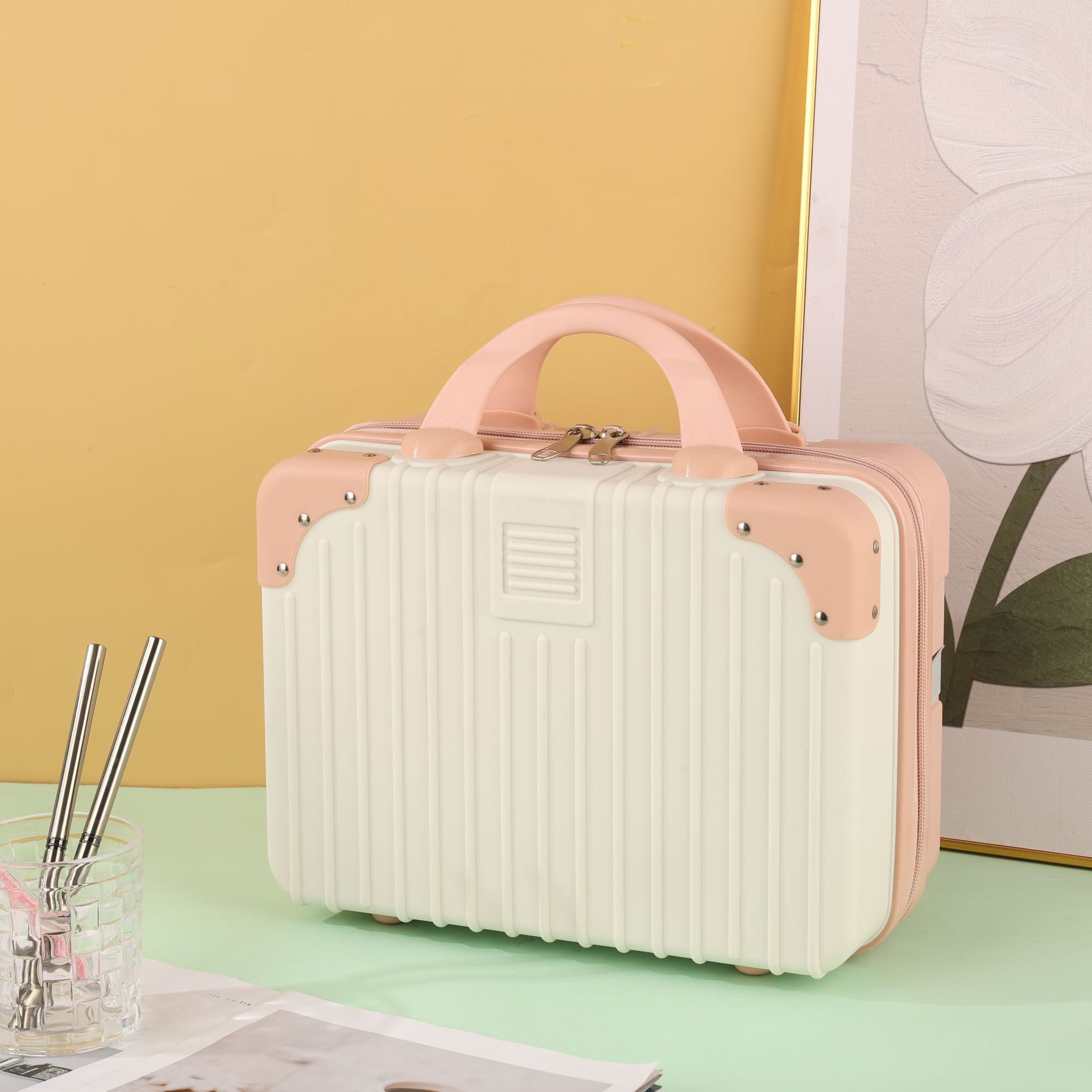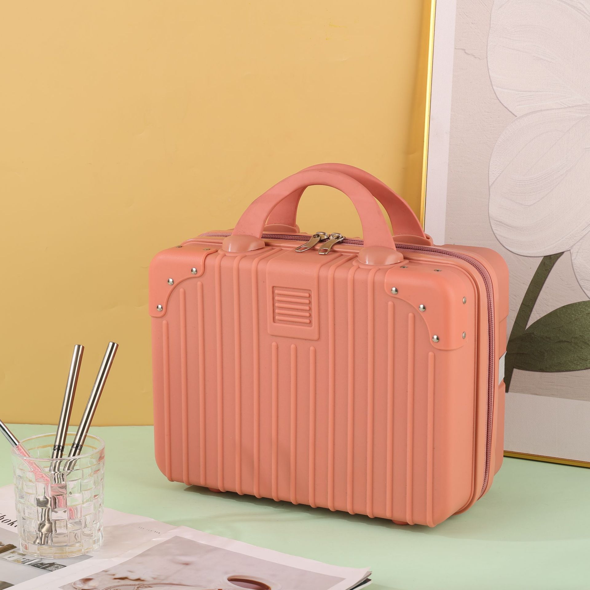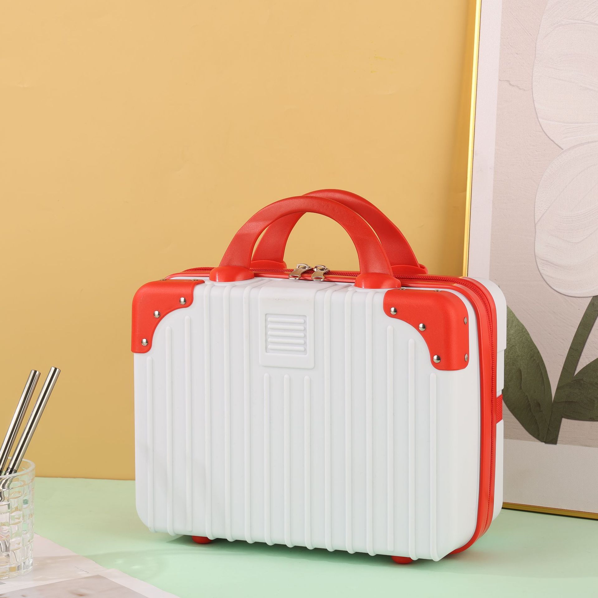 빨간색 휴대용 여행가방 미니 13inch 화장품 상자 만화 곰 보관 상자 소형 경량 여행스토어 가기