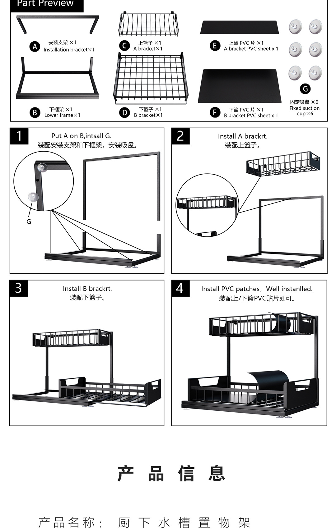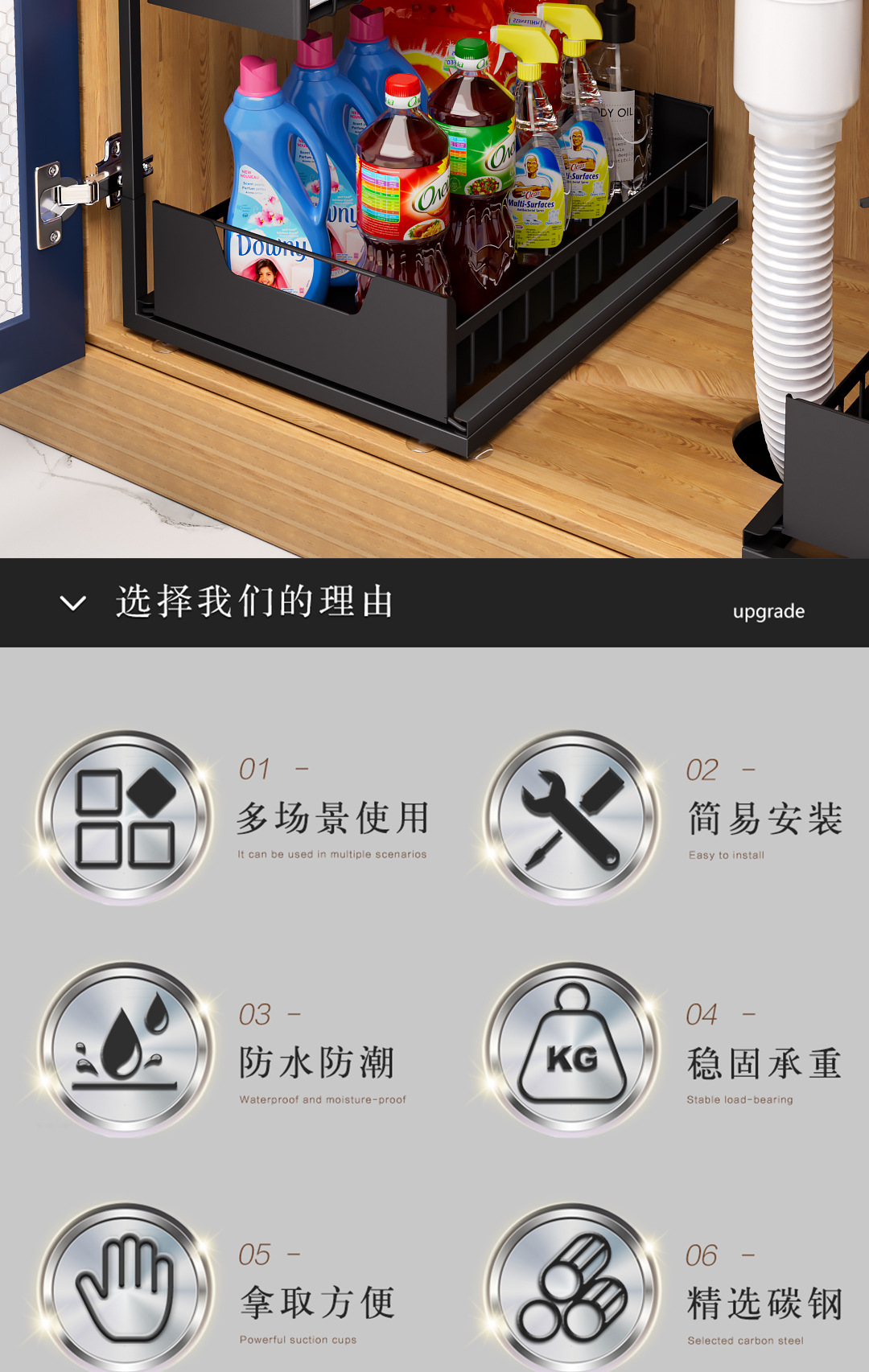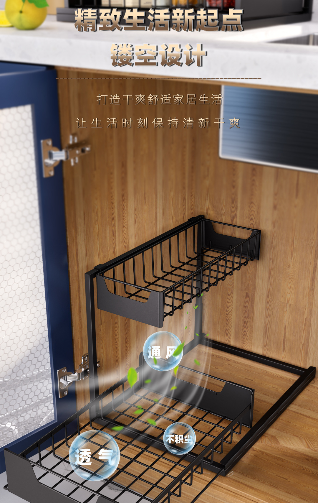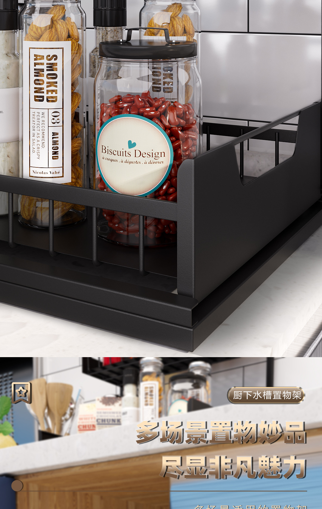 주방 언더 싱크 스토리지 랙 바닥 형 주방 언더 풀 스토리지 텔레스코픽 식료품 캐비닛 언더 캐비닛 주방 언더 스토리지 랙