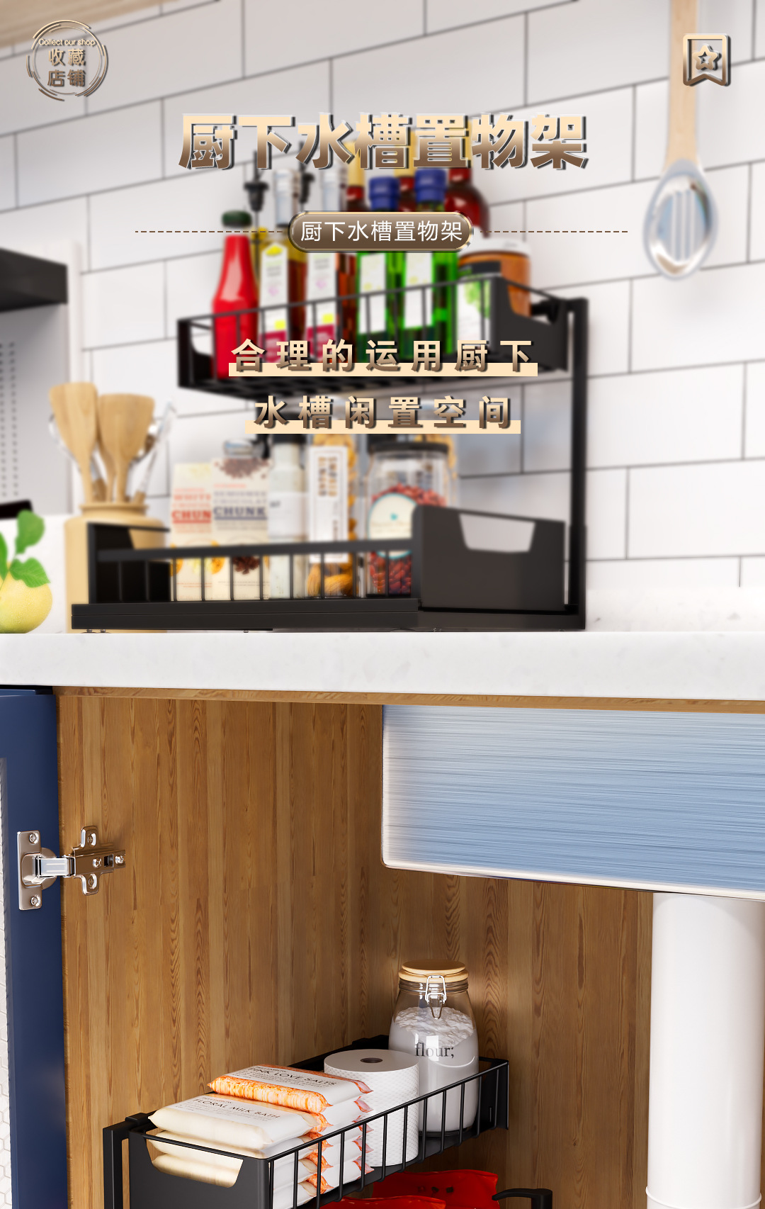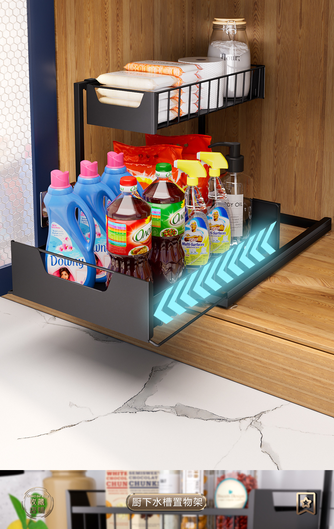 주방 언더 싱크 스토리지 랙 바닥 형 주방 언더 풀 스토리지 텔레스코픽 식료품 캐비닛 언더 캐비닛 주방 언더 스토리지 랙스토어 가기