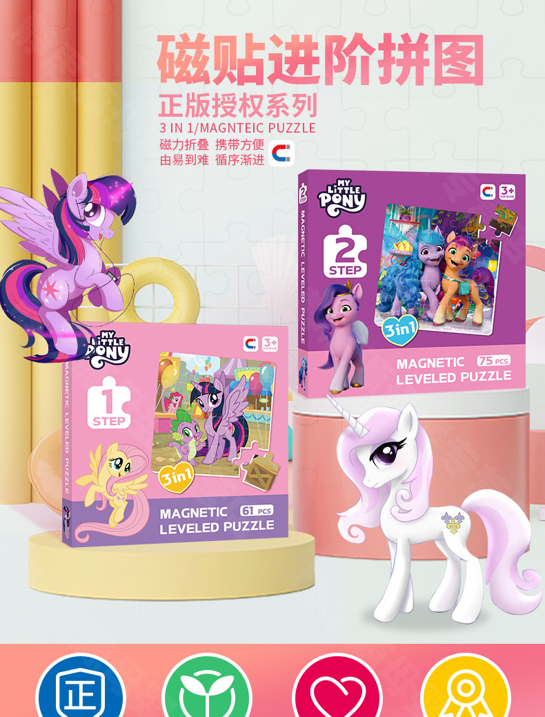 조랑말 자기 퍼즐 폴라로이드 3 ~ 6 세 어린이 조기 교육 마그네틱 플랫 차트 유치원 아기 교육 조립 장난감스토어 가기