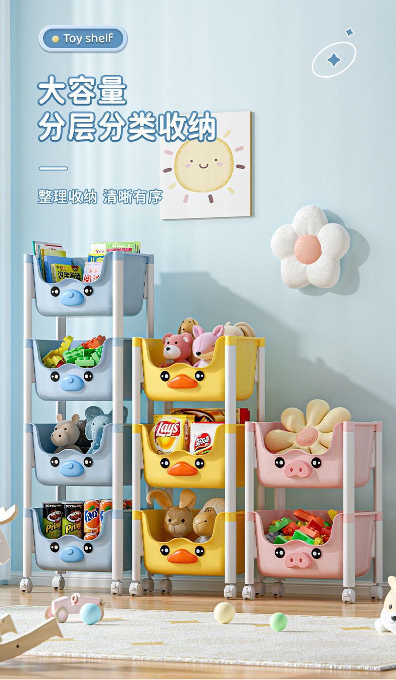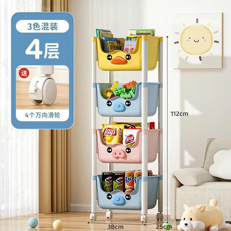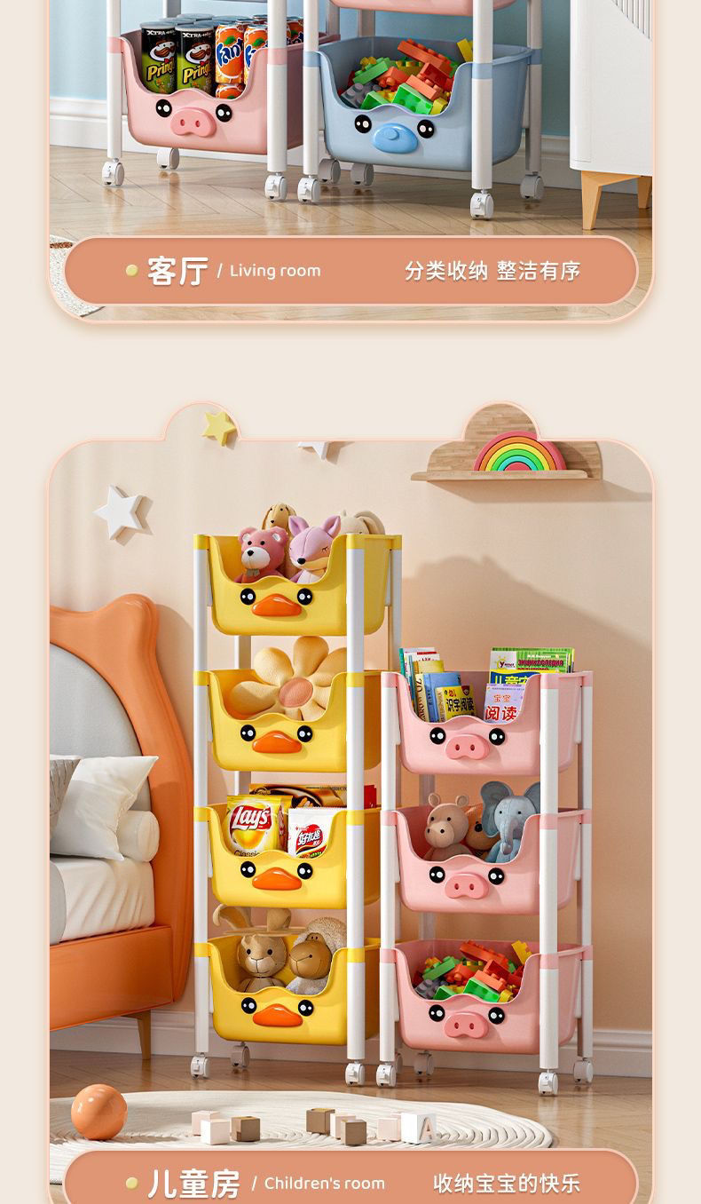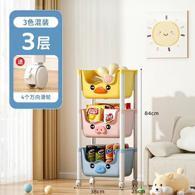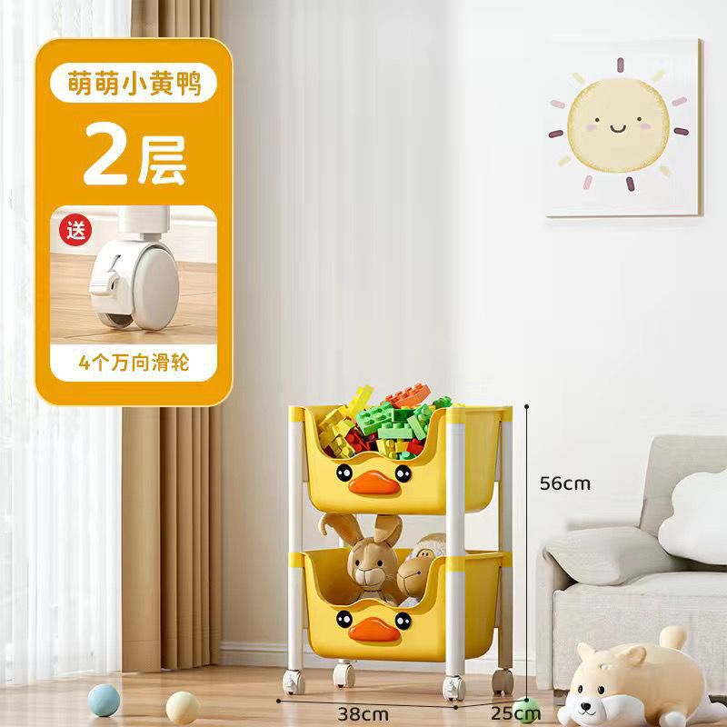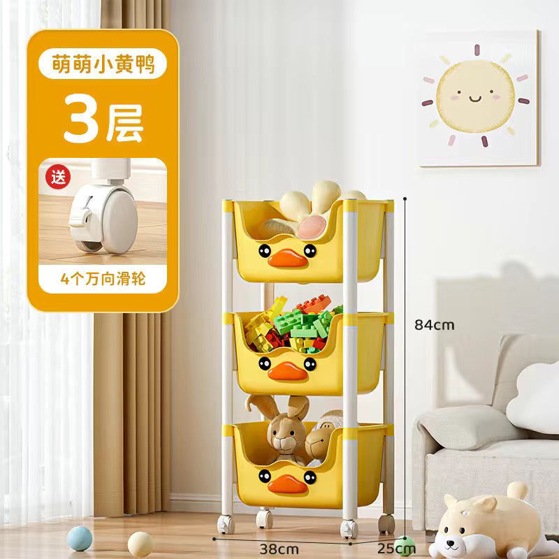 스낵 스토리지 랙 거실 침실 침실 다층 스토리지 랙 어린이 장난감 모바일 옐로우 오리 스토리지 랙스토어 가기