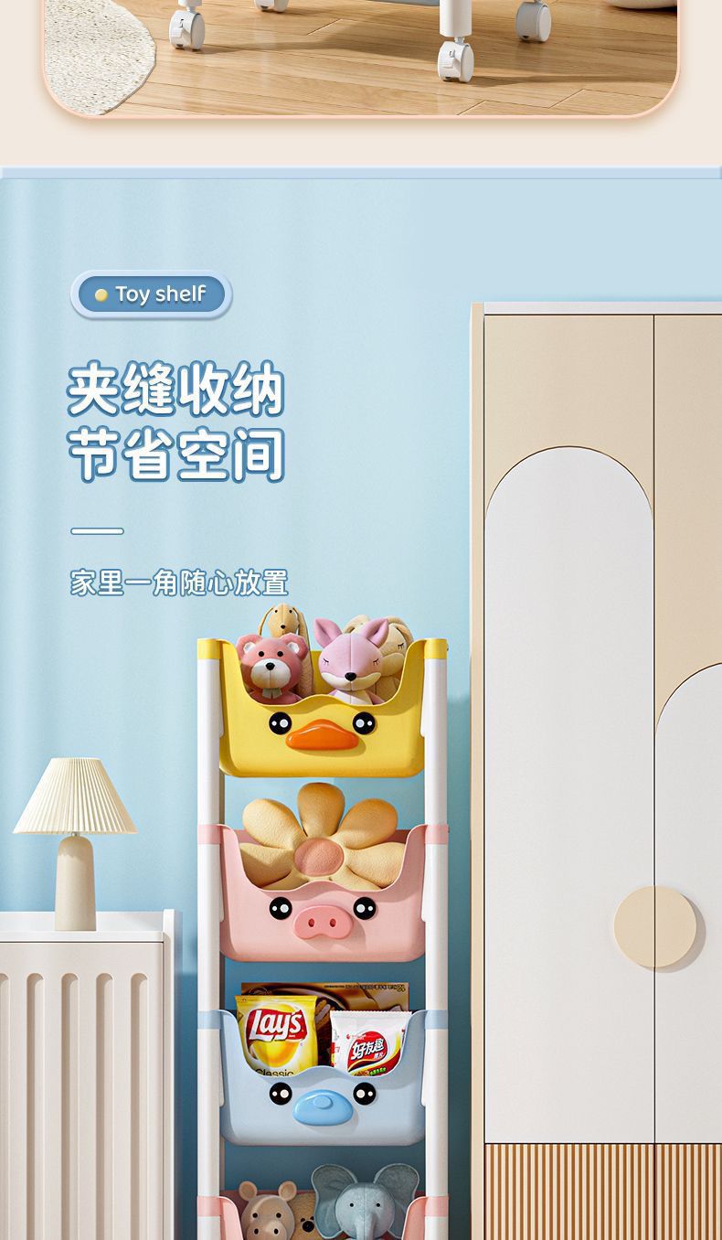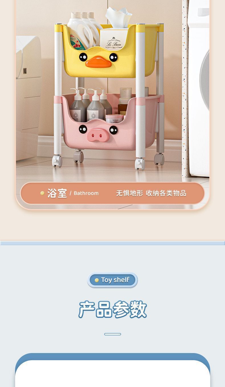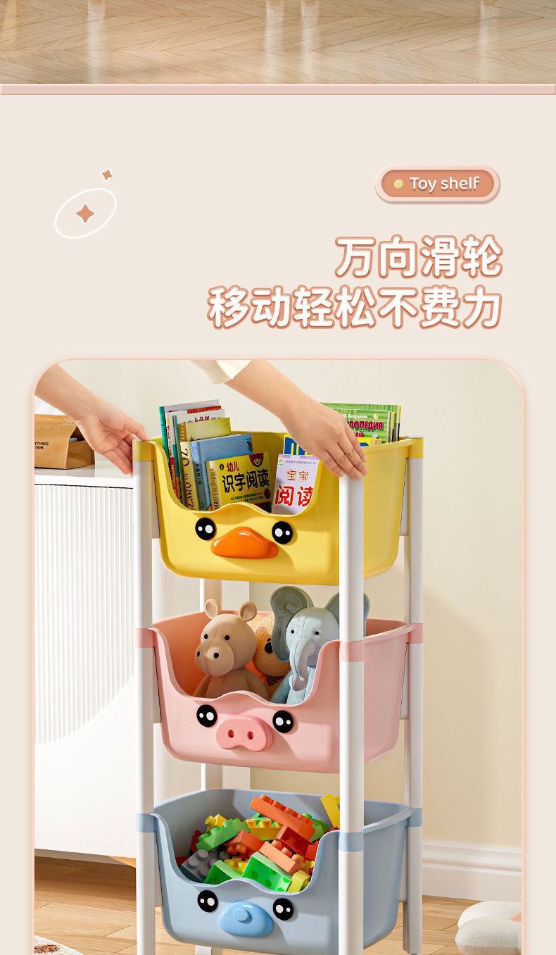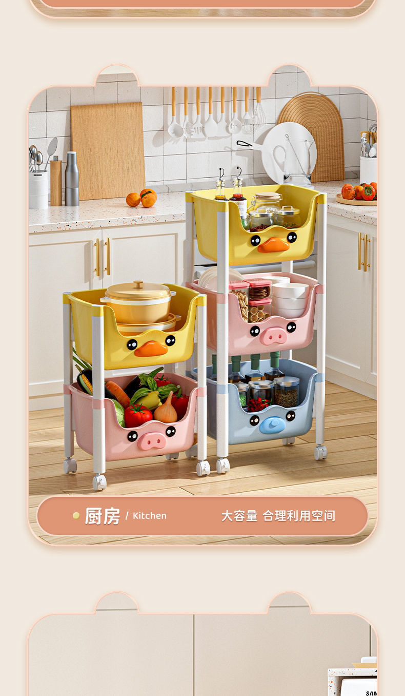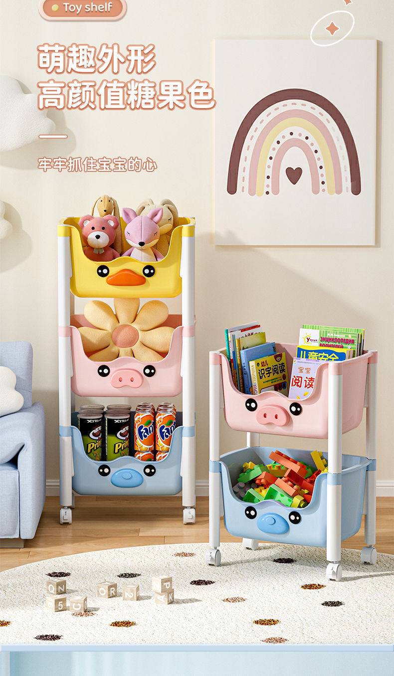 스낵 스토리지 랙 거실 침실 침실 다층 스토리지 랙 어린이 장난감 모바일 옐로우 오리 스토리지 랙스토어 가기