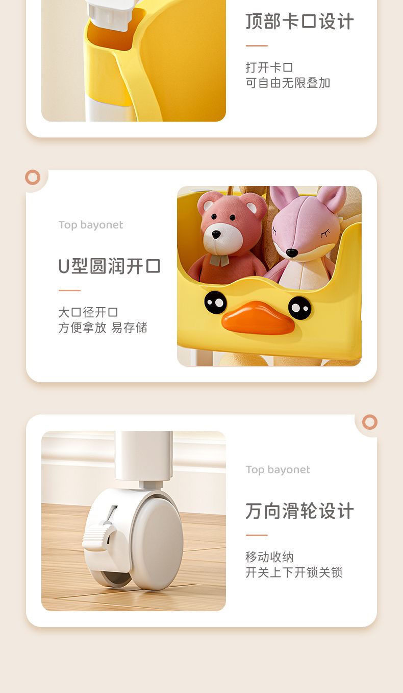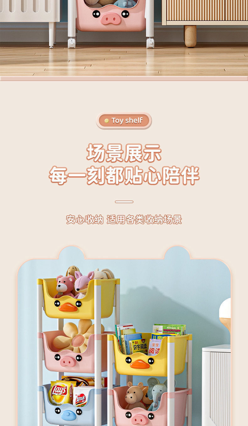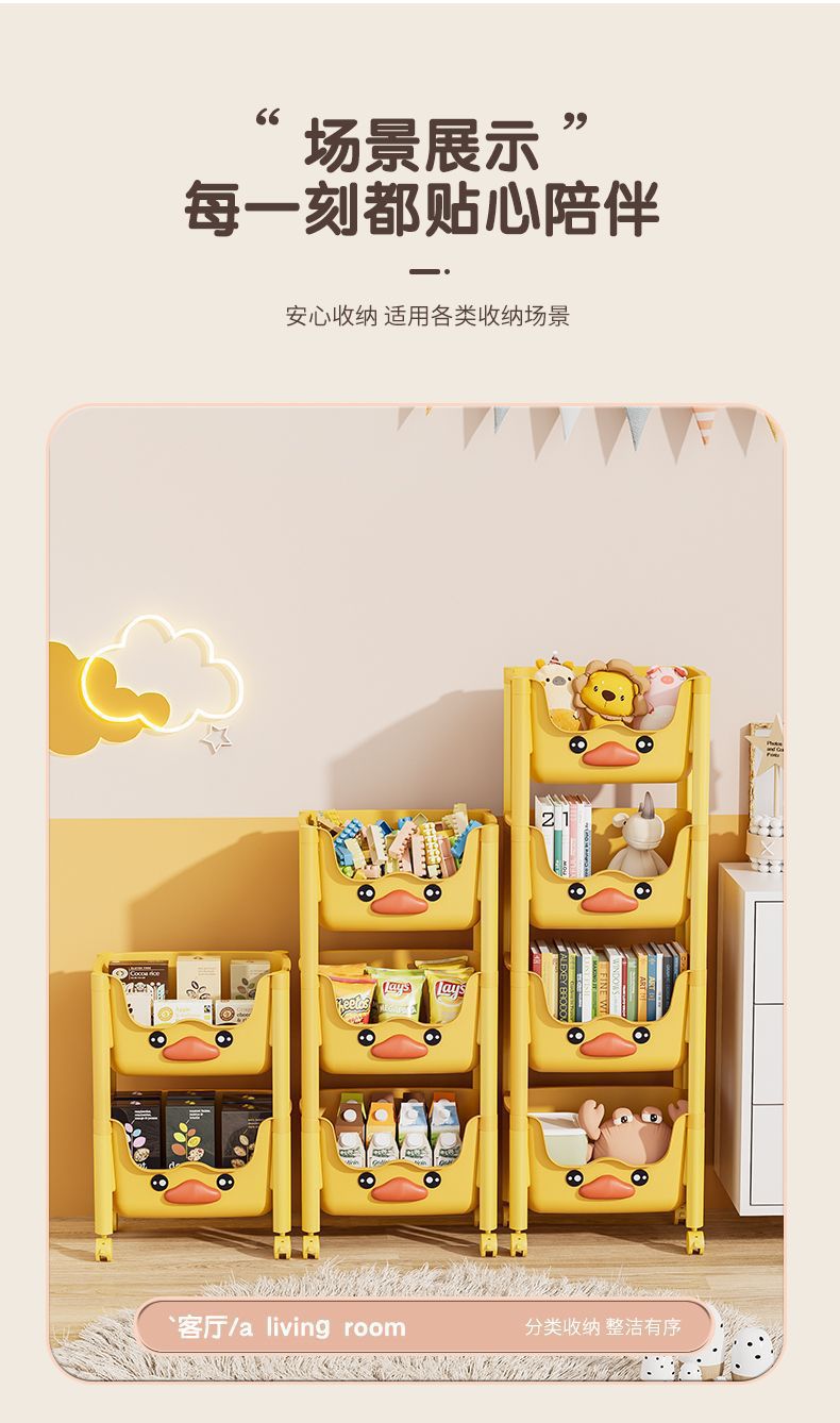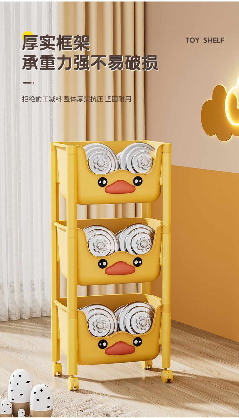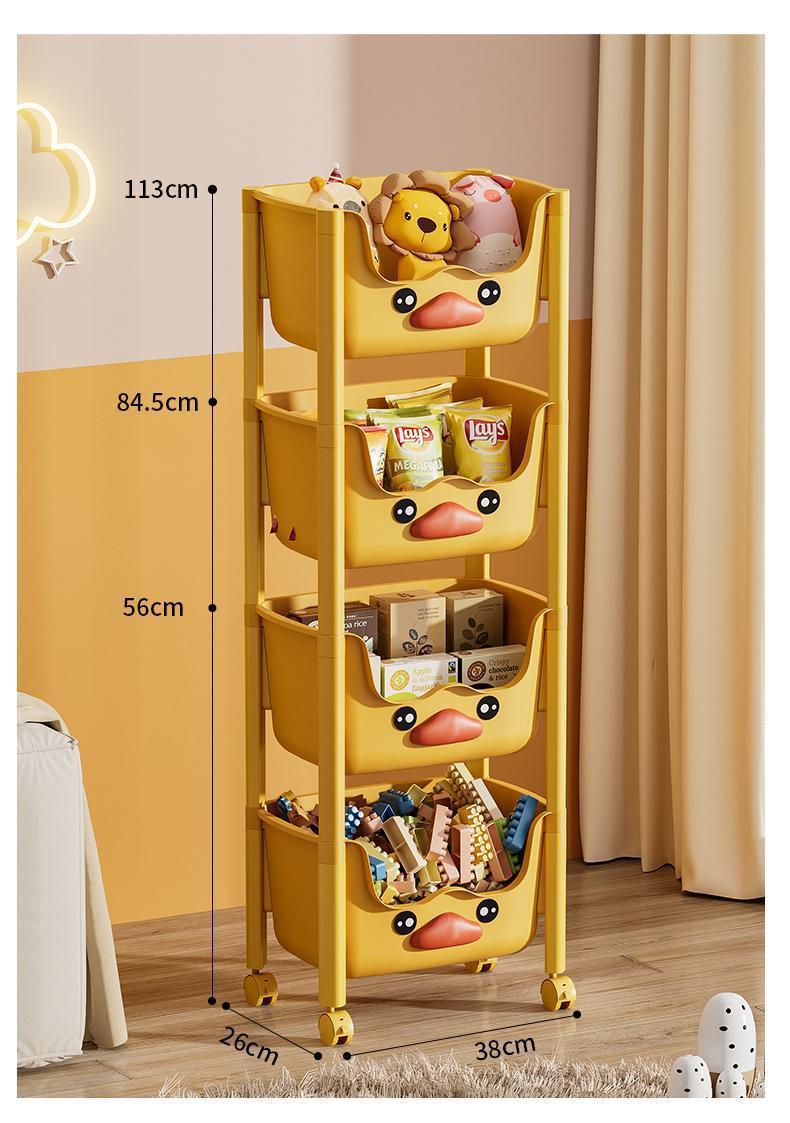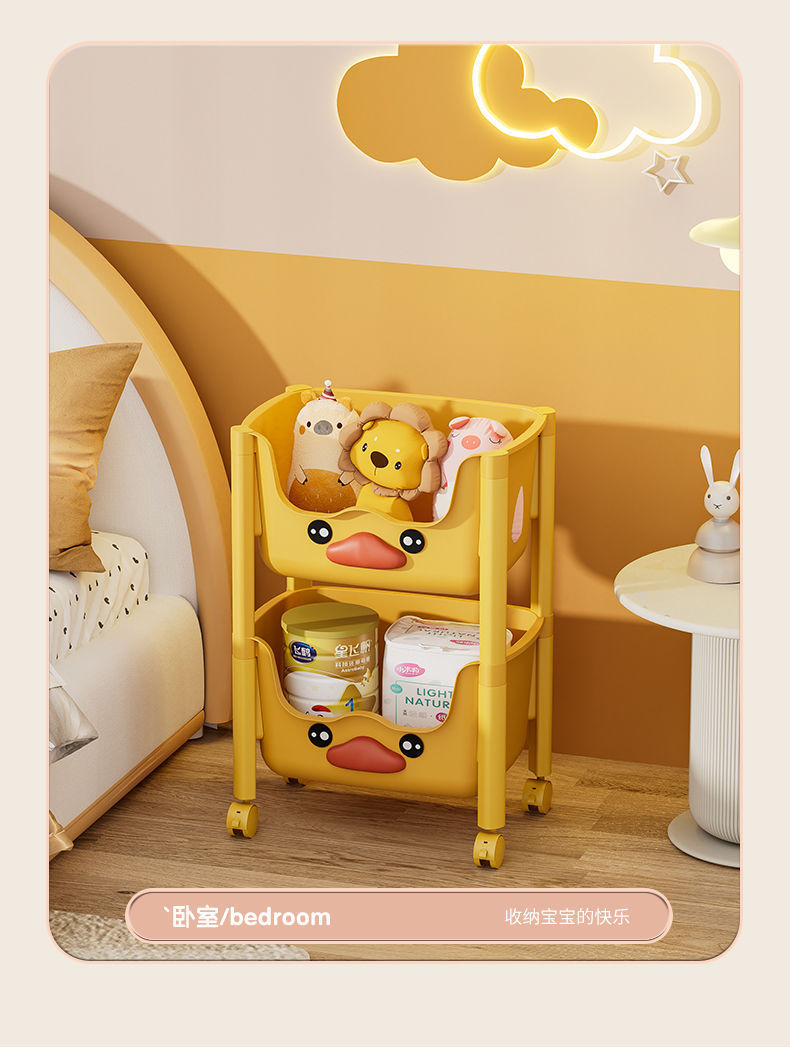 스낵 스토리지 랙 거실 침실 침실 다층 스토리지 랙 어린이 장난감 모바일 옐로우 오리 스토리지 랙