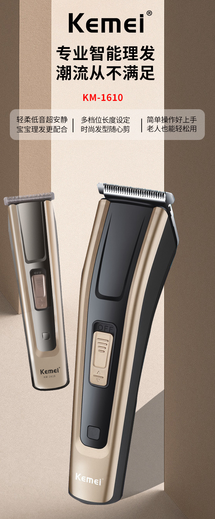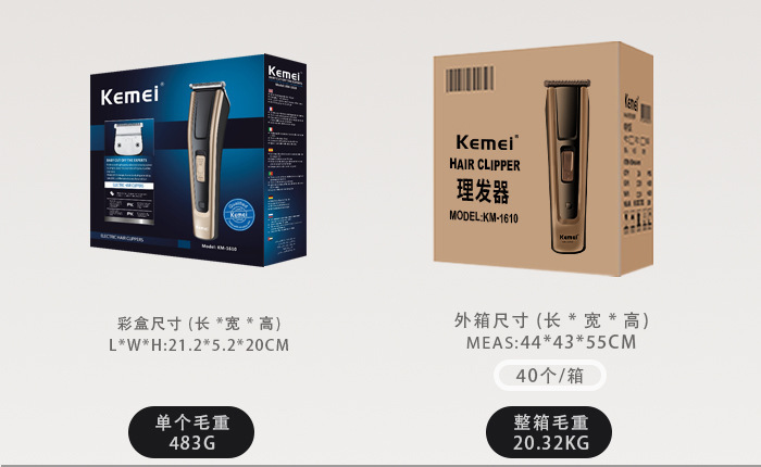 국경 간 새로운 Kemei 헤어 클리퍼 KM-1610 전기 면도 헤드 음소거 긴 내구성 전기 클리퍼 미용실 전용스토어 가기