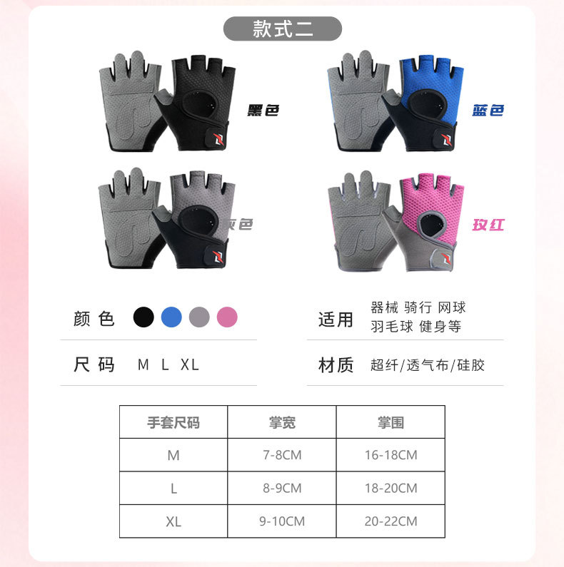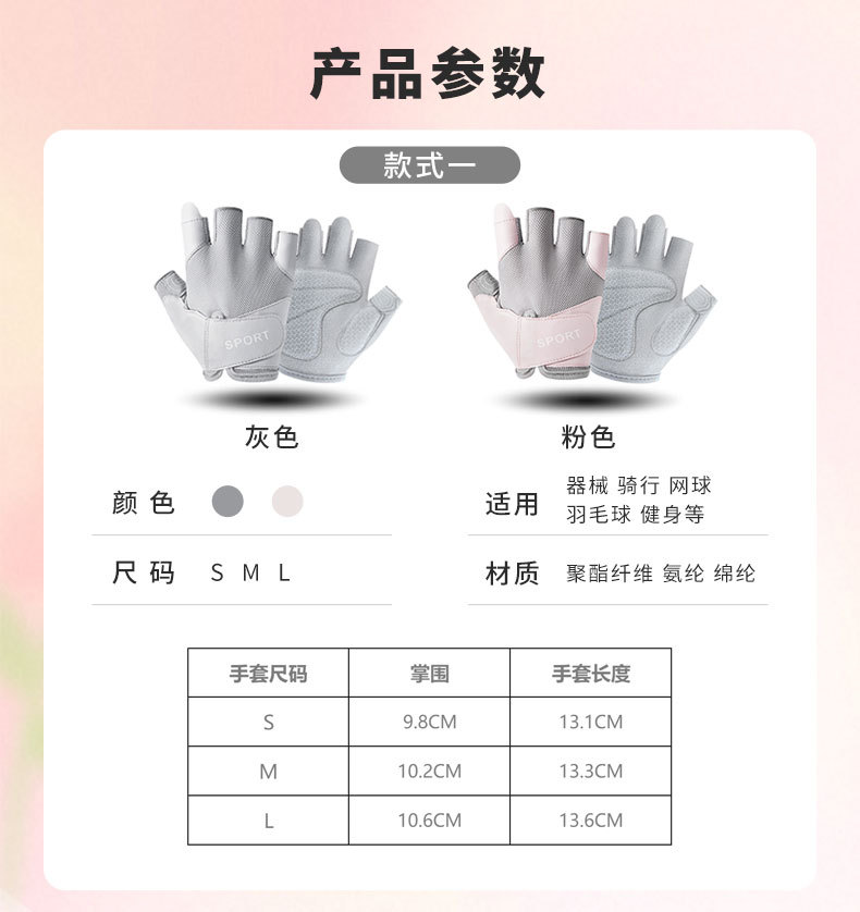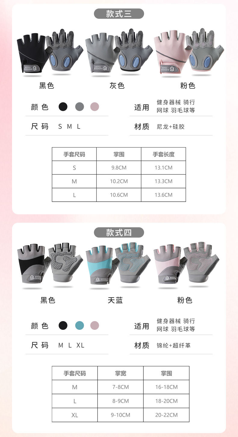 새로운 스포츠 피트니스 장갑 여성의 힘 운동 미끄럼 방지 통기성 내마모성 손목 반 손가락 라이딩 장갑 도매스토어 가기