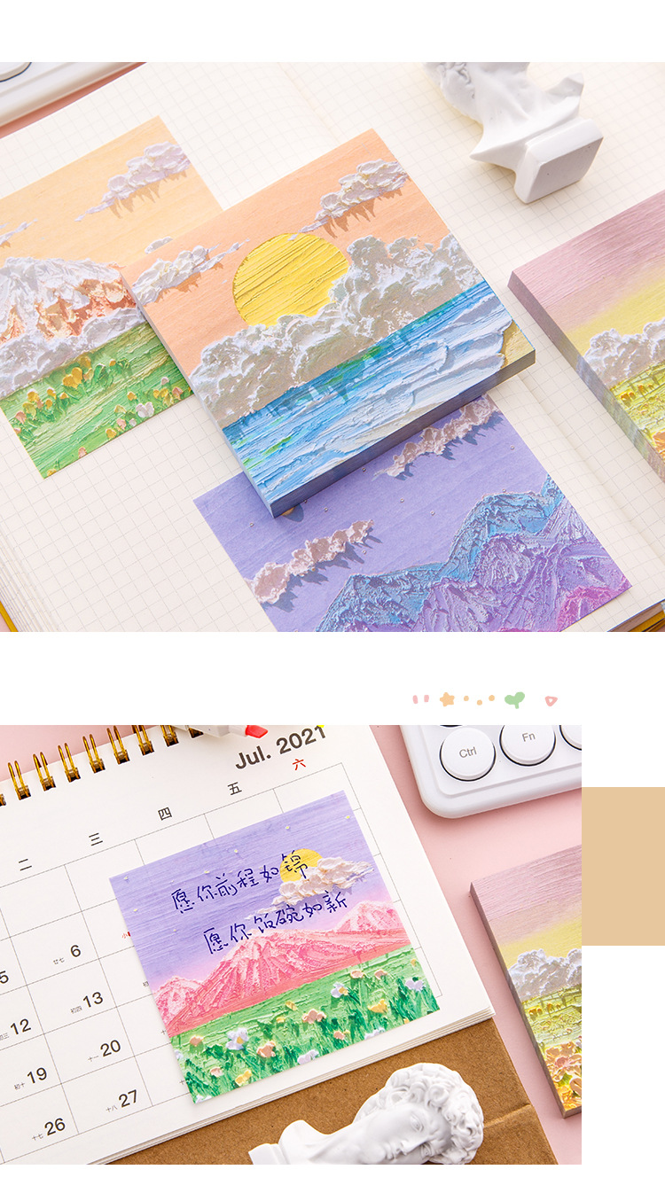 유화 풍경 포스트잇 학생 노트 라벨 스티커 사무실 마킹 메모장 어린이 상품 선물