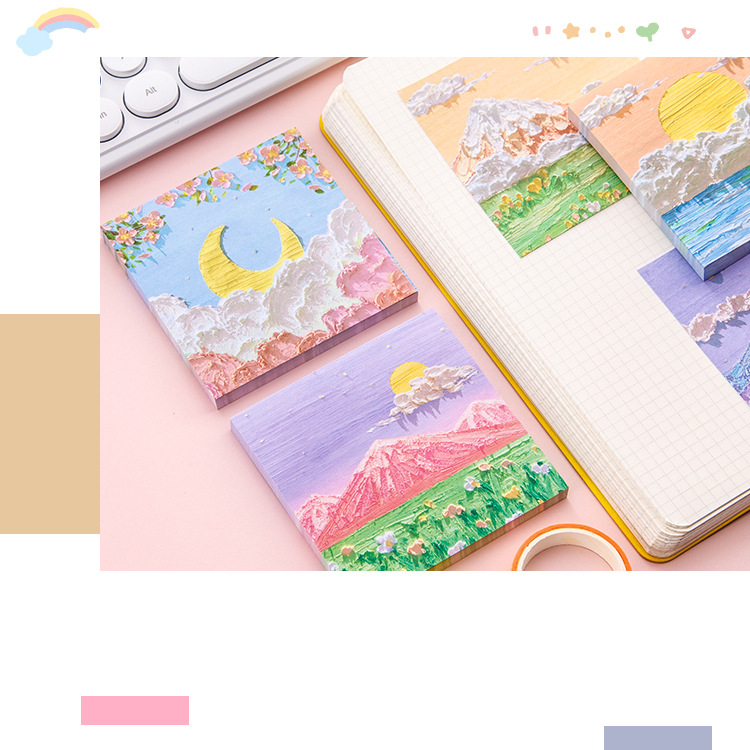 유화 풍경 포스트잇 학생 노트 라벨 스티커 사무실 마킹 메모장 어린이 상품 선물스토어 가기