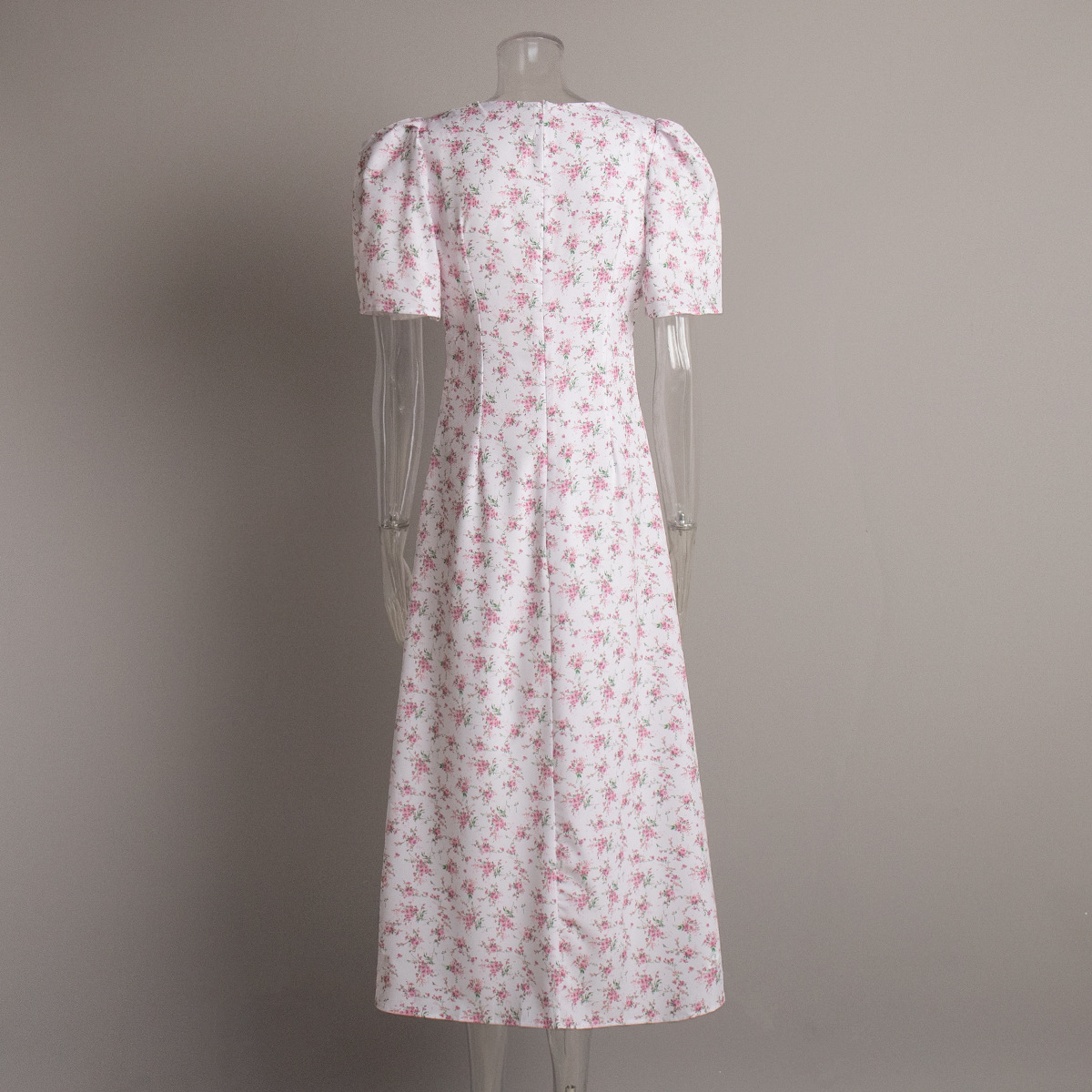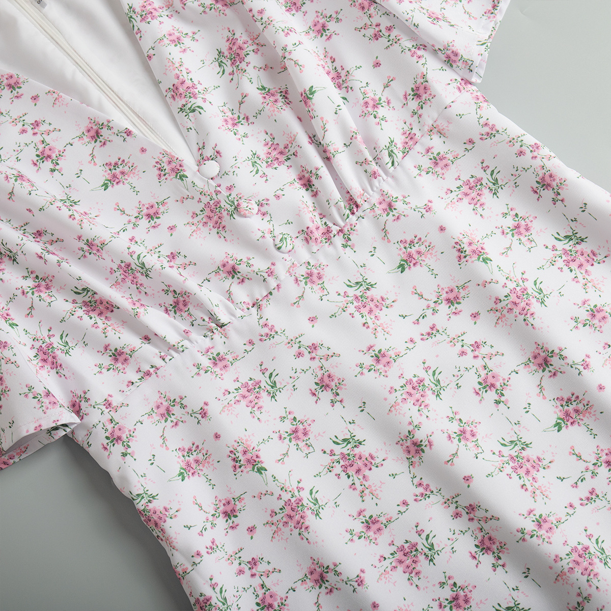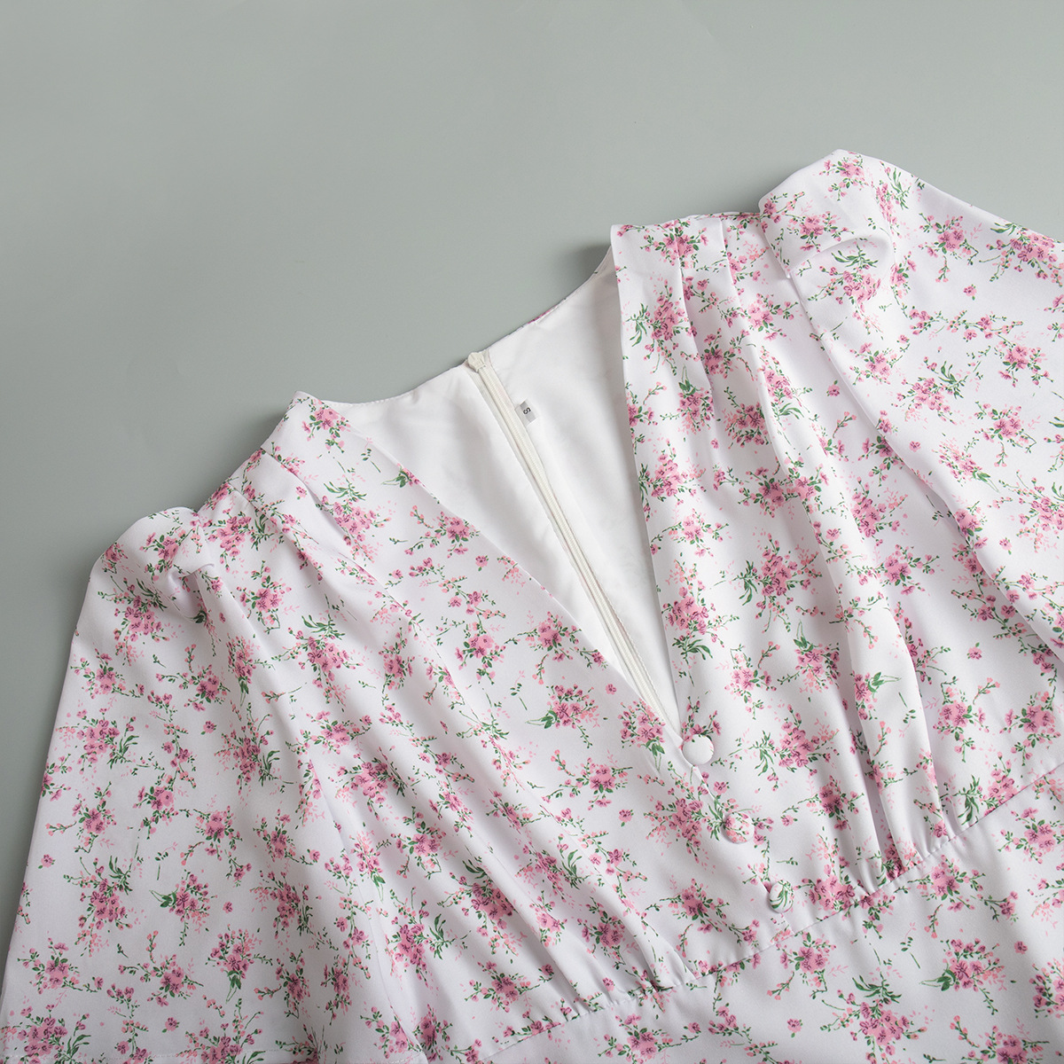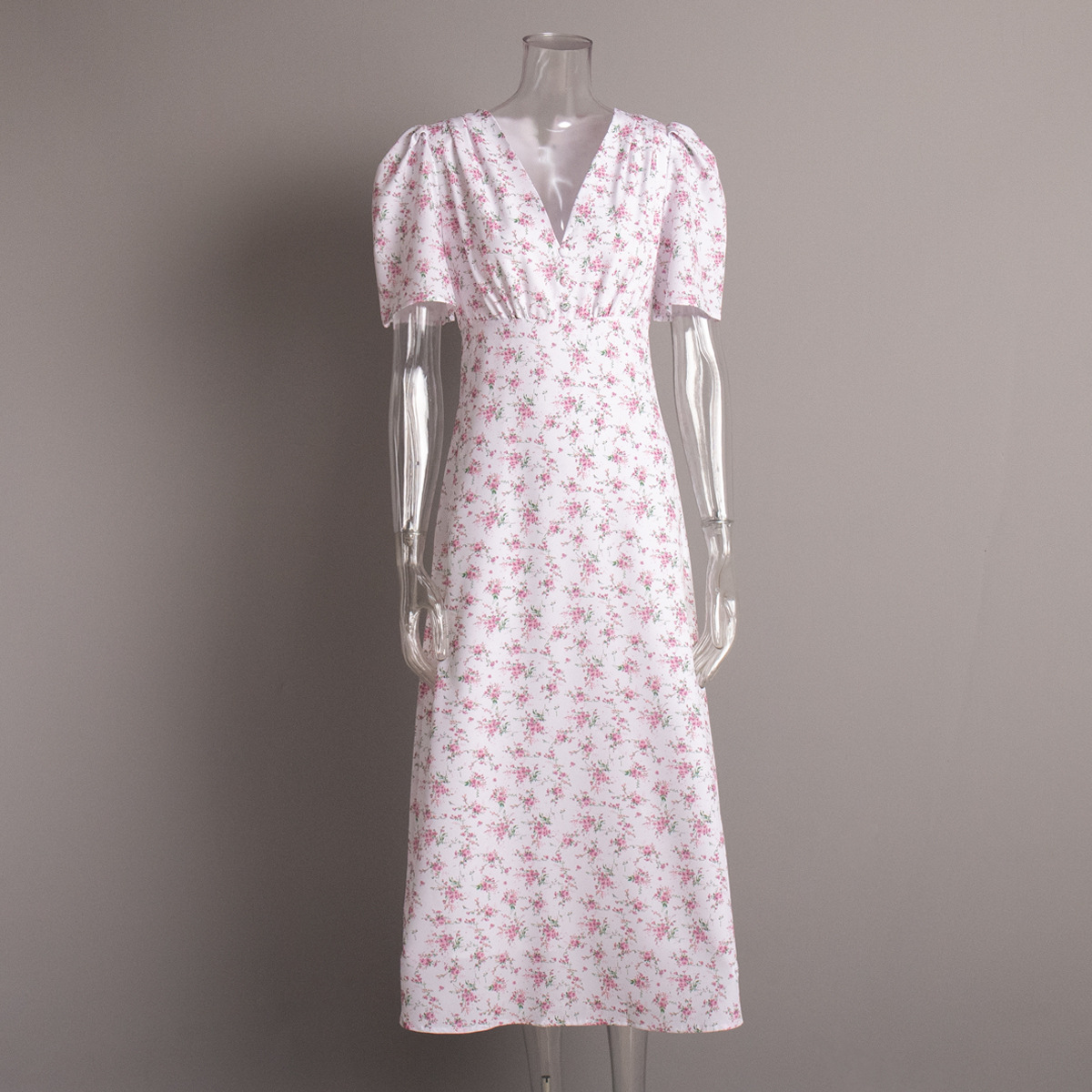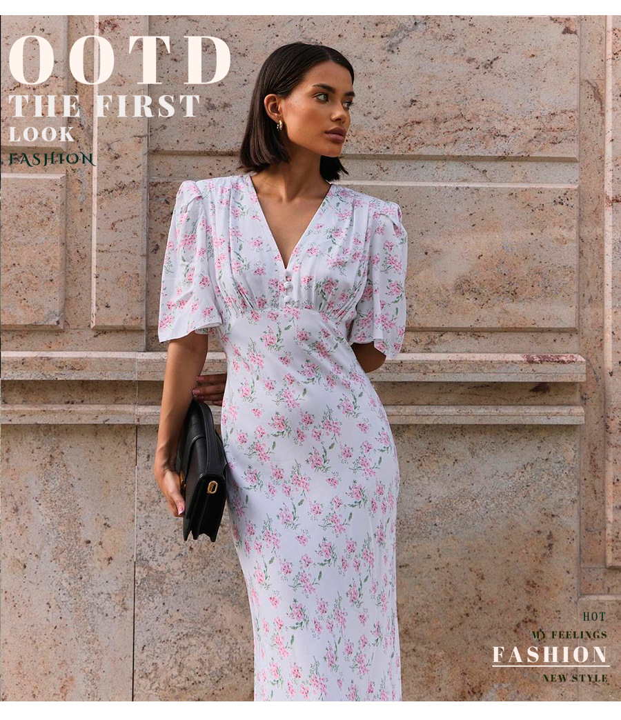 국경 간 반팔 꽃무늬 드레스 유럽과 미국 2025 여름 신작 브이넥 오른쪽 어깨 하이 웨이스트 롱 꽃무늬 드레스스토어 가기