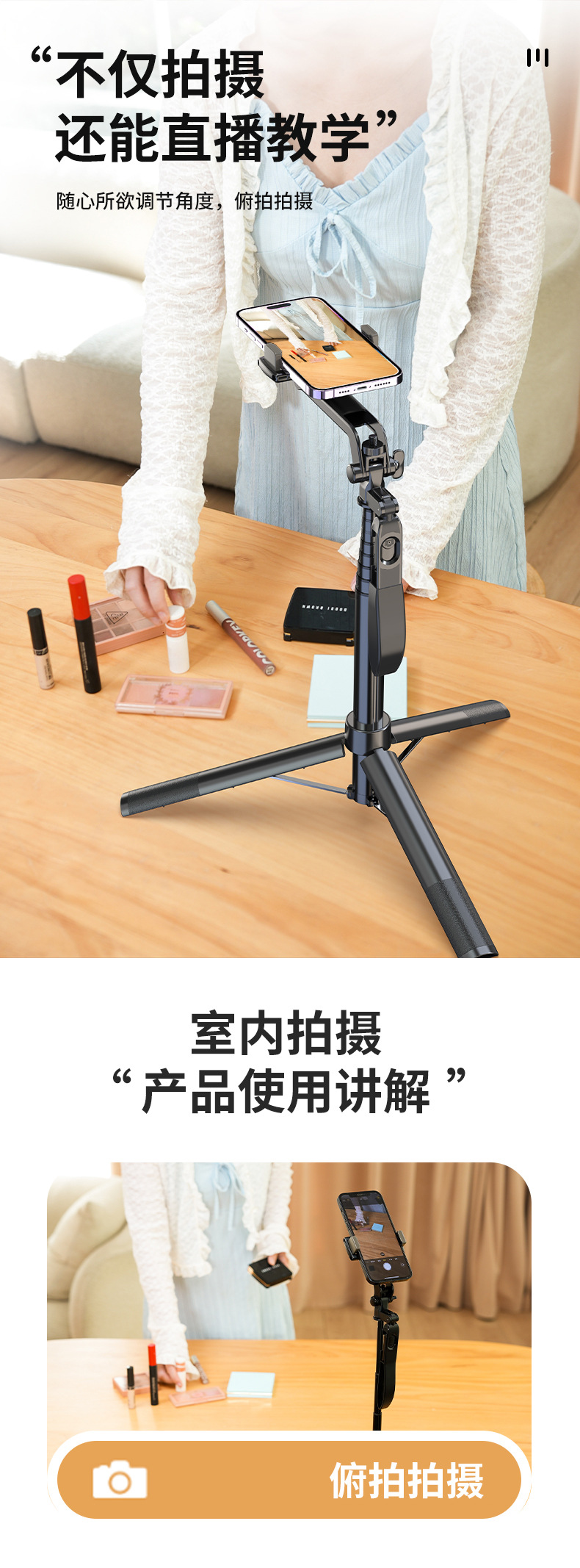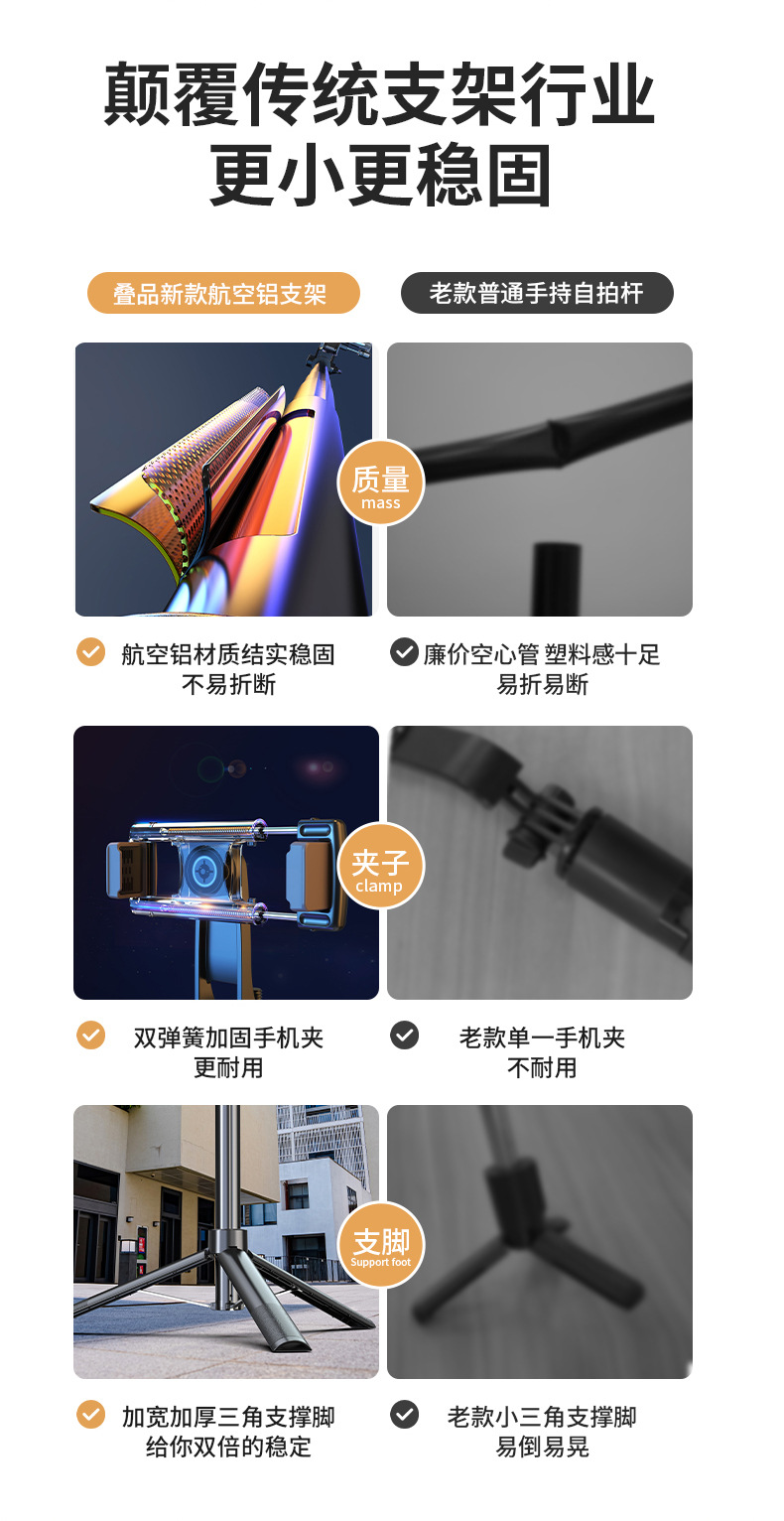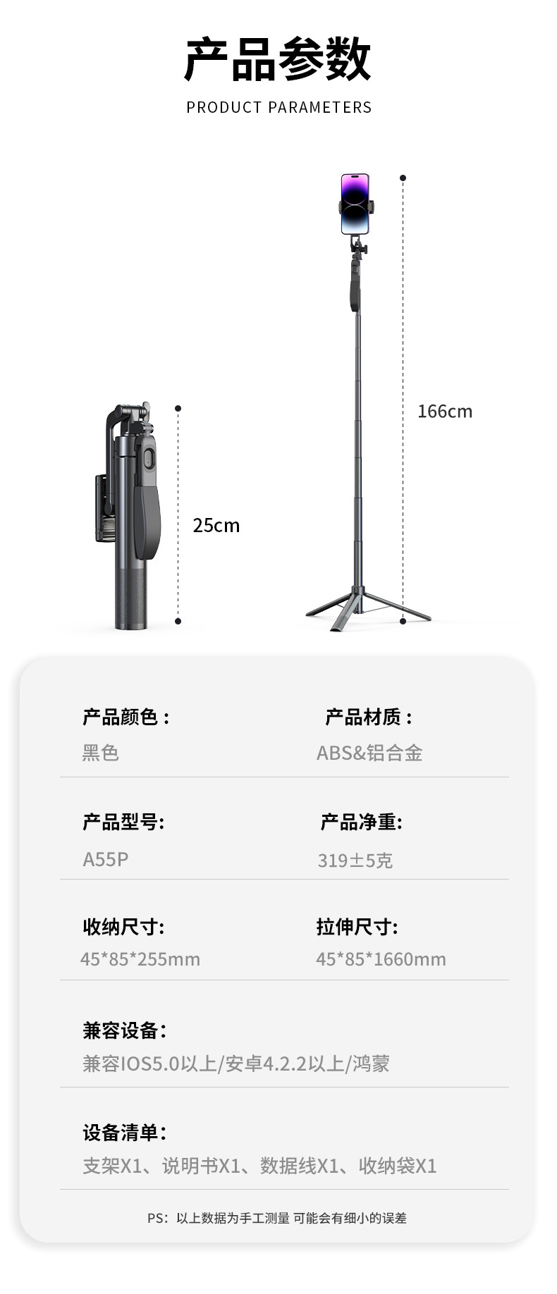 장착 된 A55P 셀프 타이머 1.7 m 휴대 전화 홀더 휴대용 안정적인 삼각대 라이브 사진 블루투스 원격 컨트롤러