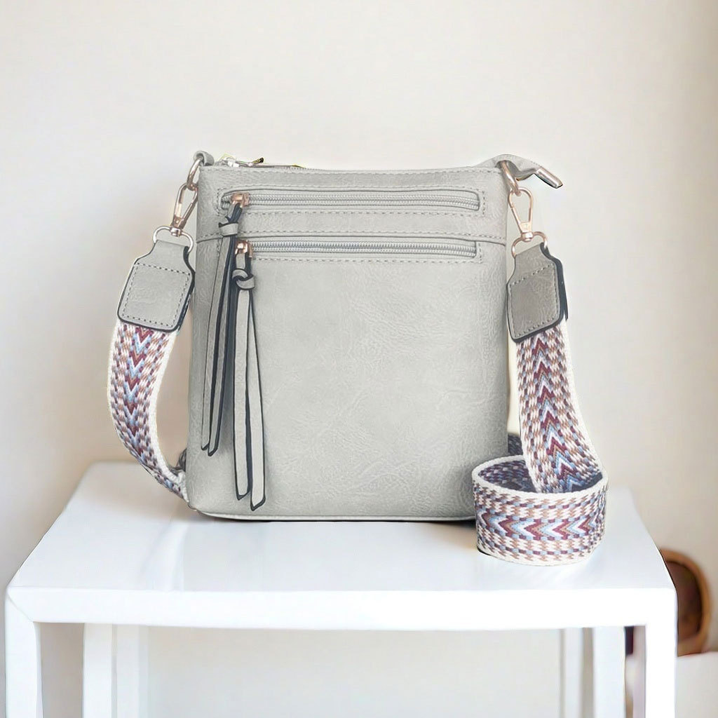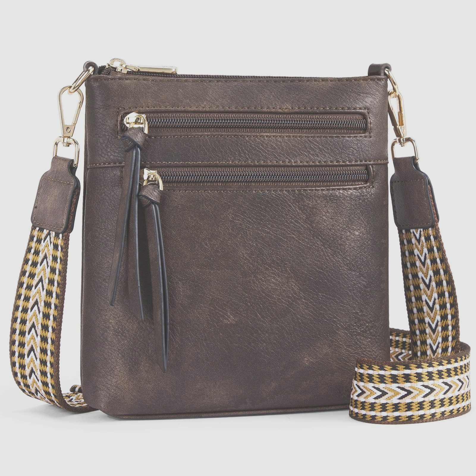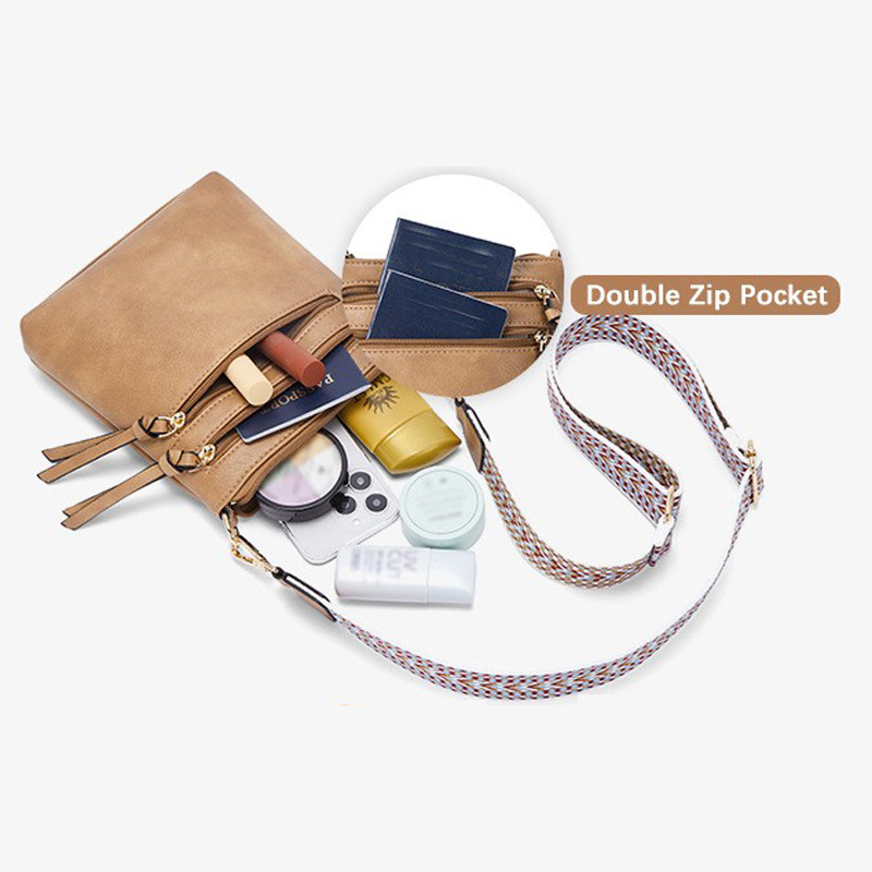 새로운 여성 가방 멀티 지퍼 포켓 수직 여성용 어깨 가방 고급 질감 크로스 백 자카드 와이드 어깨 스트랩 백