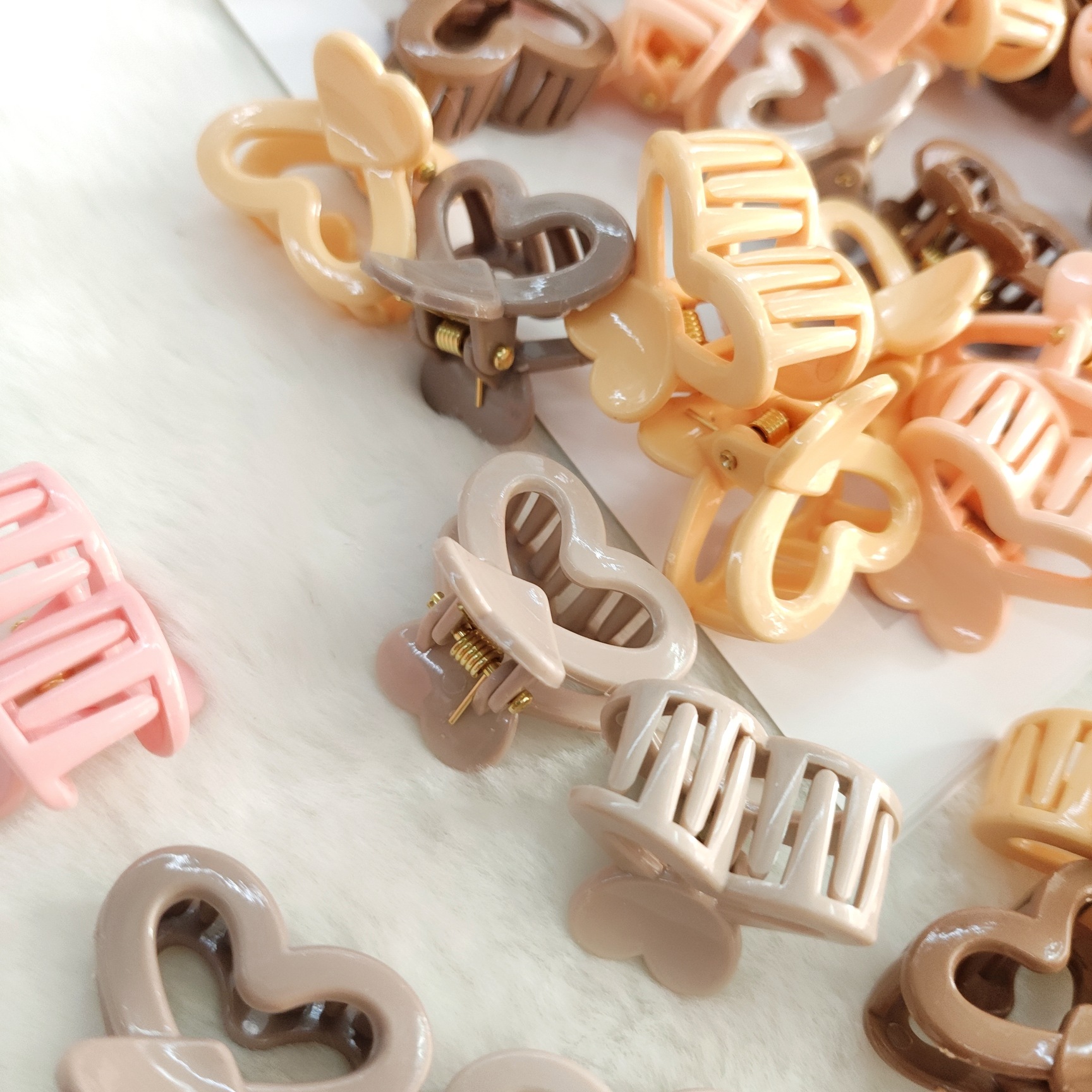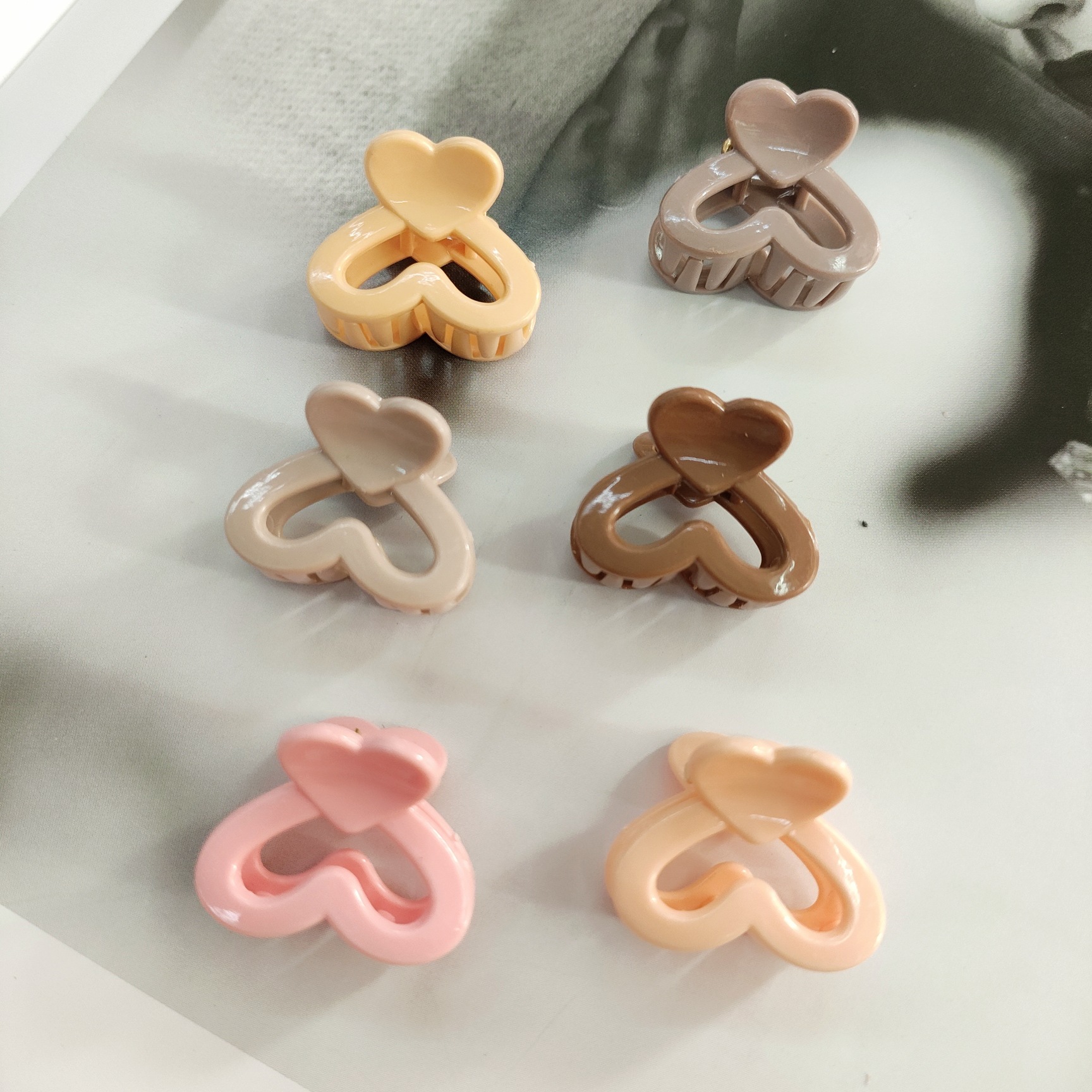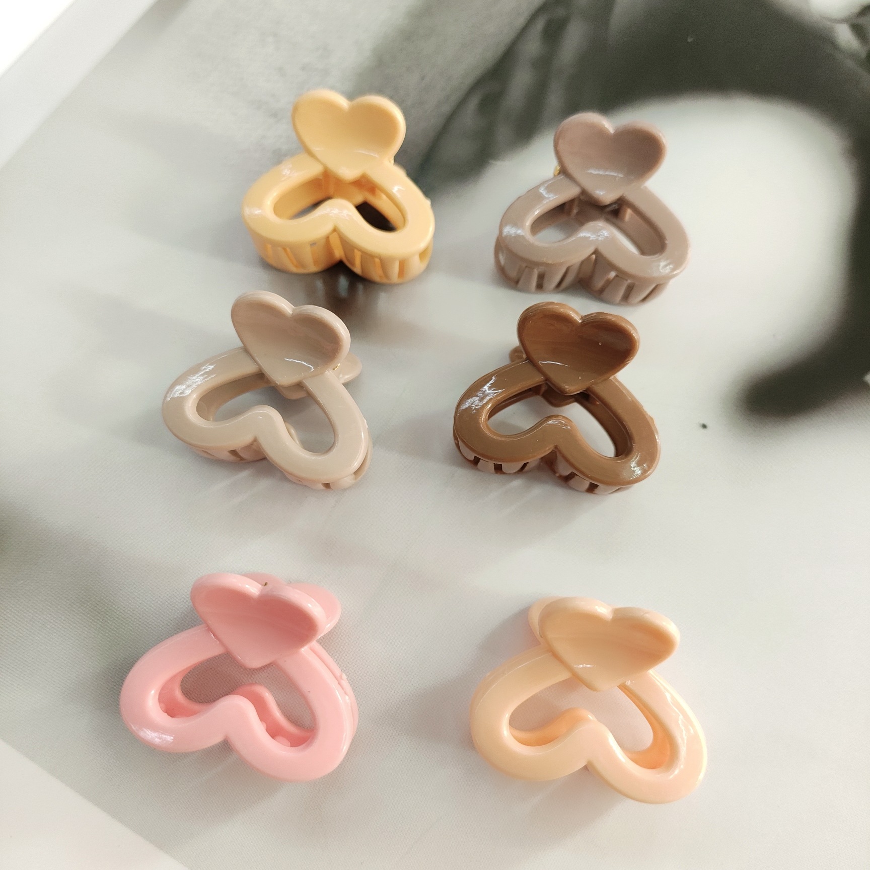 2.5 벌크 컬러 중공 심장 라이트 베이지 어린이 미니 클로 클립 귀여운 만화 헤어핀 소녀의 앞