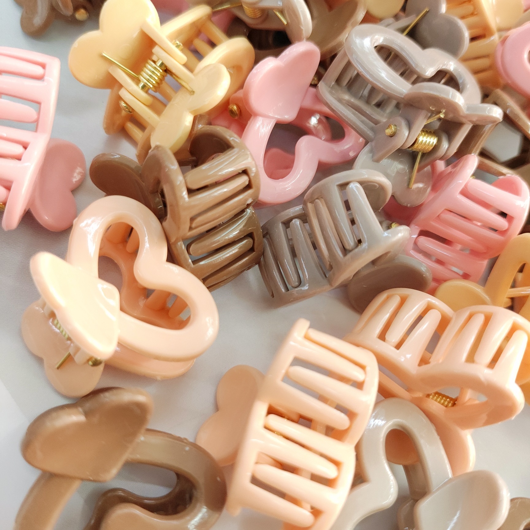 2.5 벌크 컬러 중공 심장 라이트 베이지 어린이 미니 클로 클립 귀여운 만화 헤어핀 소녀의 앞스토어 가기