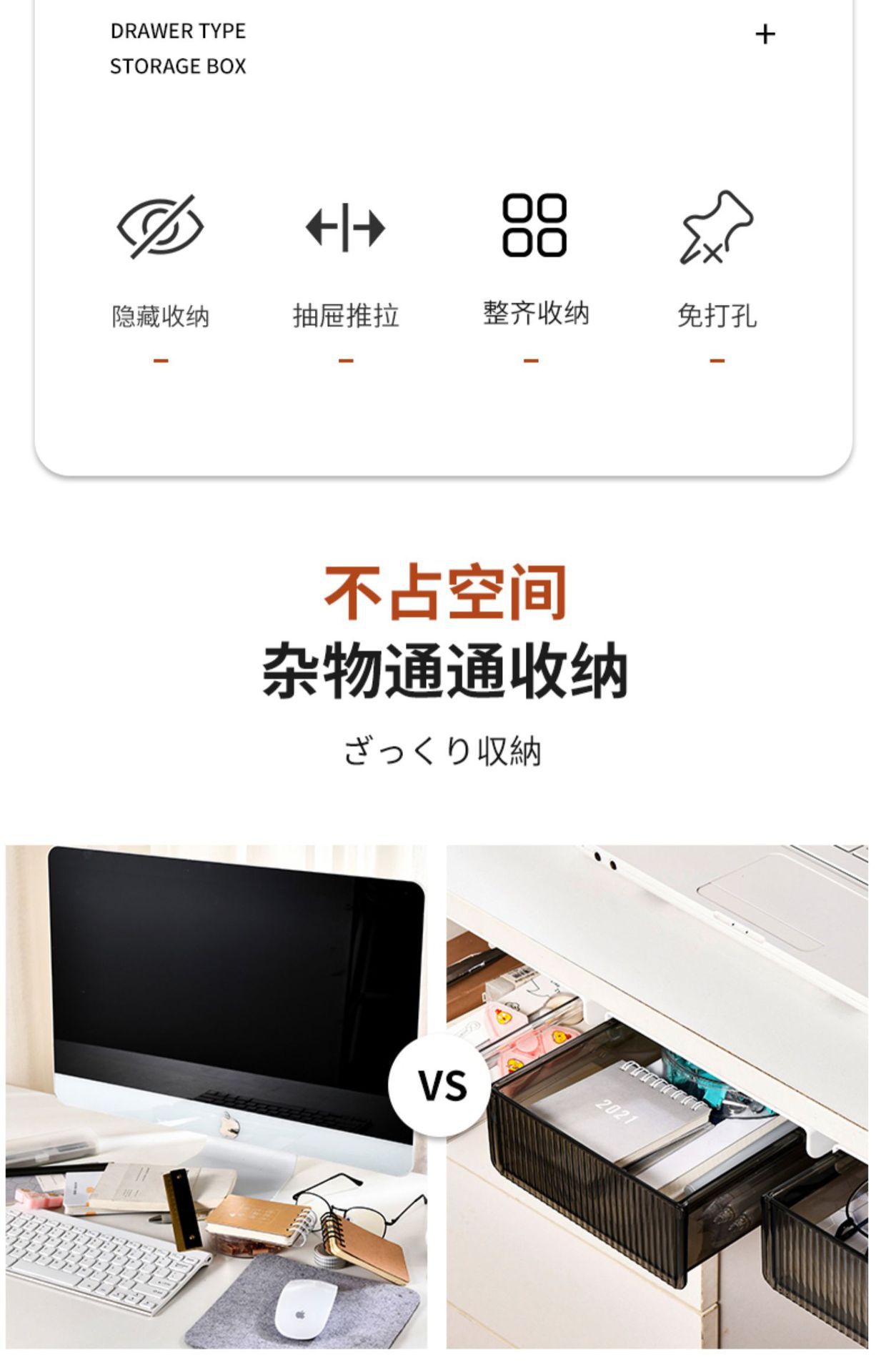 테이블 서랍 바탕 화면 저장 상자 사무실 마무리 유물 책상 하단 선반 문구 작은 보이지 않는 역