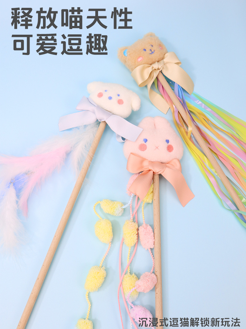 곰 토끼 강아지 재미 있은 고양이 스틱 고양이 장난감 자기 즐거움 구호 벨 물린 방지 새끼 고양이 깃털 새끼 고양이 고양이 용품스토어 가기