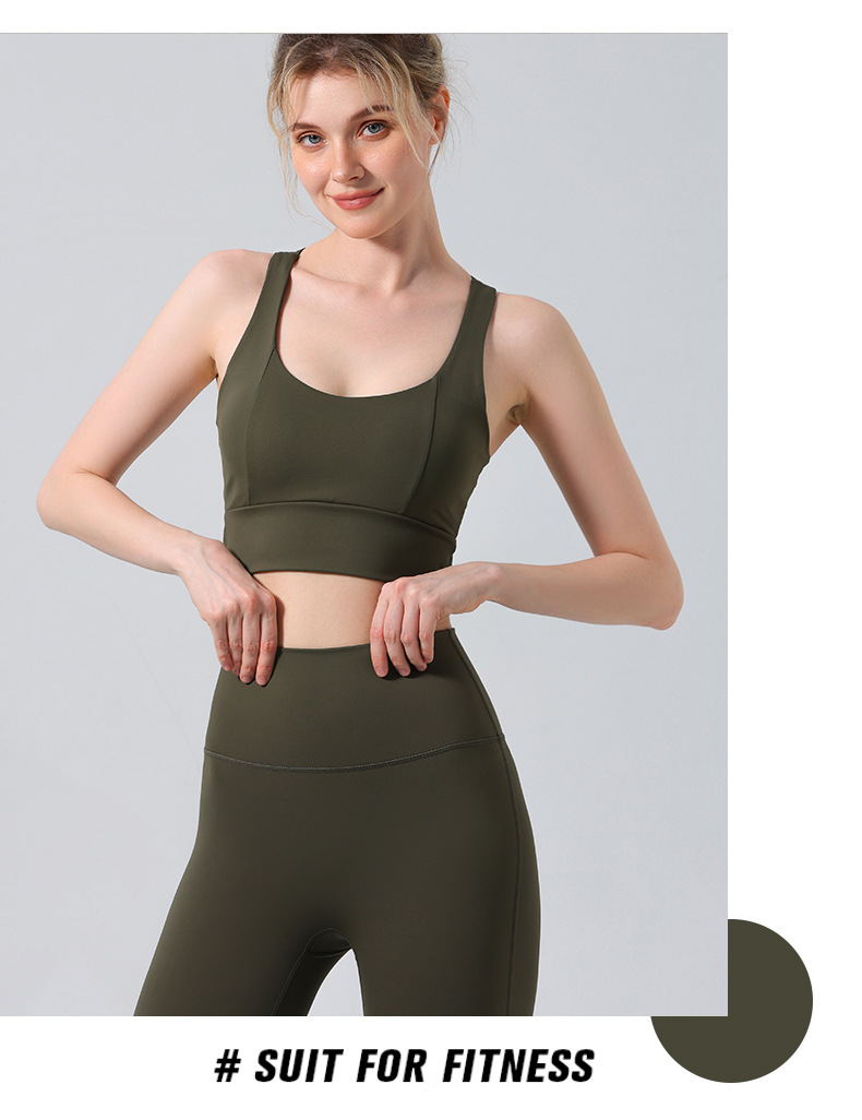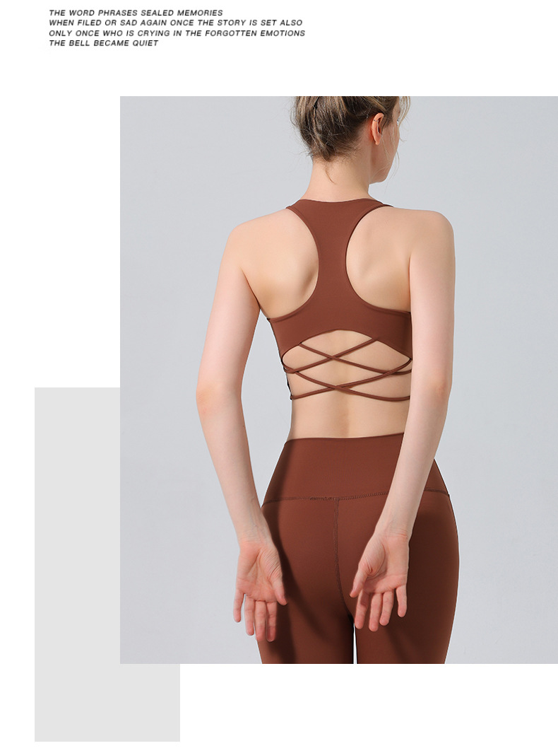 유럽 및 미국 해외 무역 스포츠 브라, 아름다운 등 디자인의 크로스탑 속옷, 댄스 요가복 세트, 여성용 피트니스 팬츠(외출복)