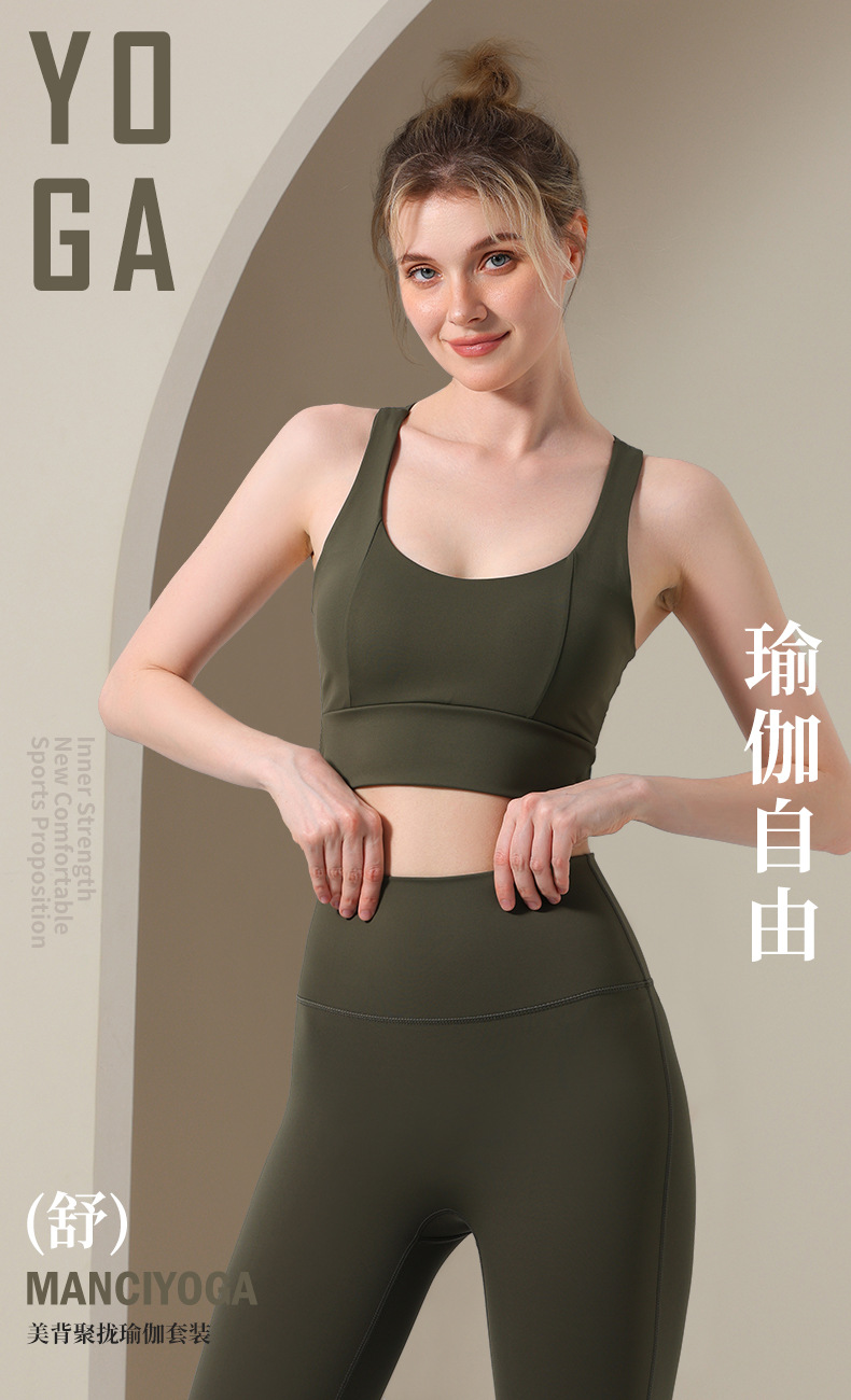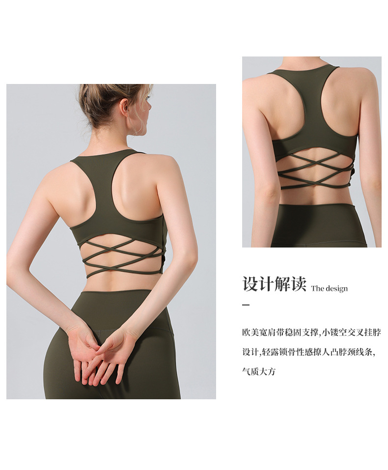 유럽 및 미국 해외 무역 스포츠 브라, 아름다운 등 디자인의 크로스탑 속옷, 댄스 요가복 세트, 여성용 피트니스 팬츠(외출복)스토어 가기