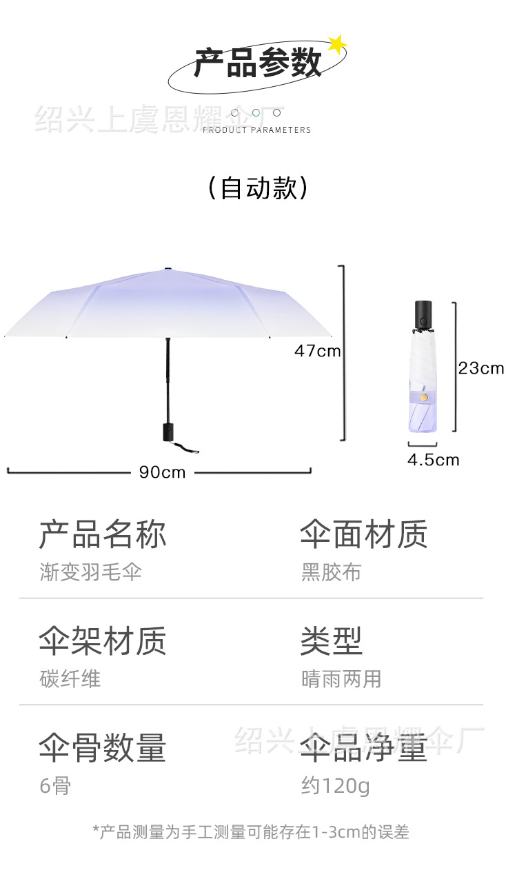 초경량 3 배 깃털 우산 작은 휴대용 미니 그라디언트 태양 우산 여성의 태양 보호 자외선 보호 햇빛과 비 우산