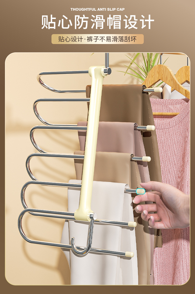 스테인레스 스틸 접이식 바지 랙 다기능 다층 바지 걸이 가정용 매직 원활한 바지 랙 옷장 보관 바지