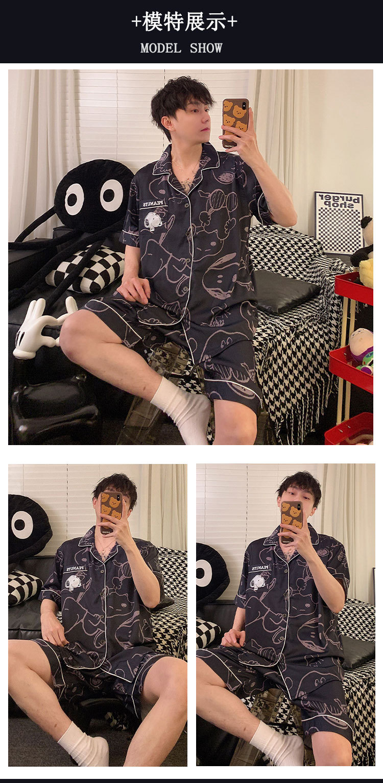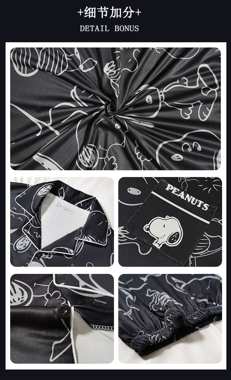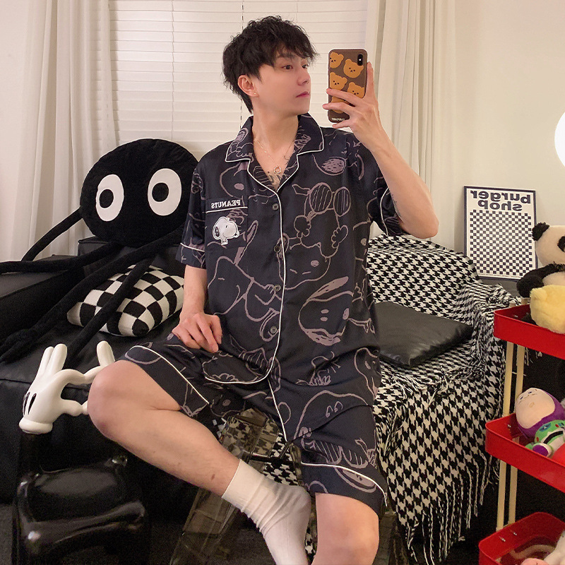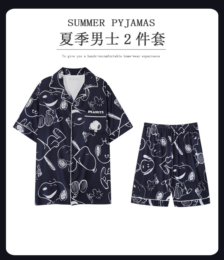 남성용 잠옷 2026년 여름 신상품 반팔 얇은 캐주얼 루즈핏 대형 사이즈 스누피 세트 학생 홈웨어스토어 가기