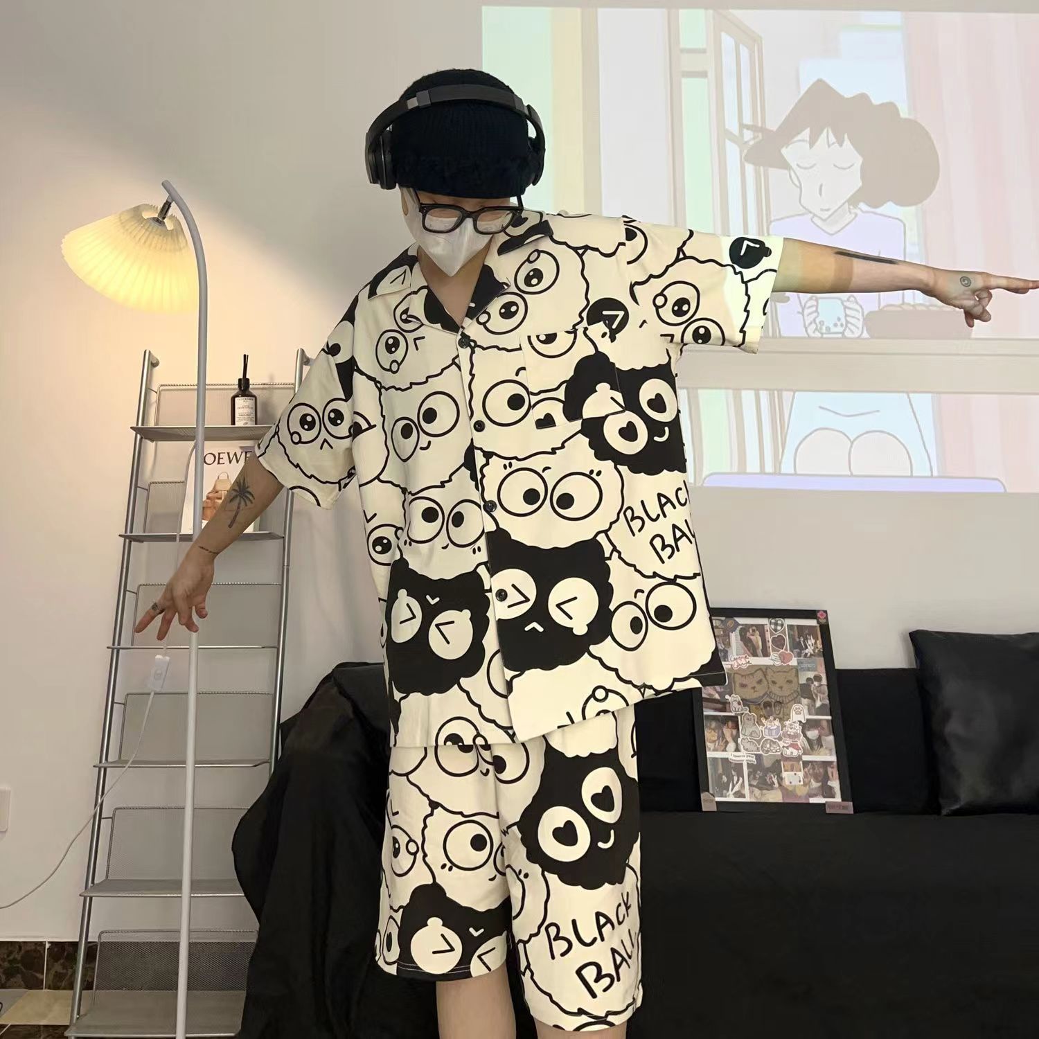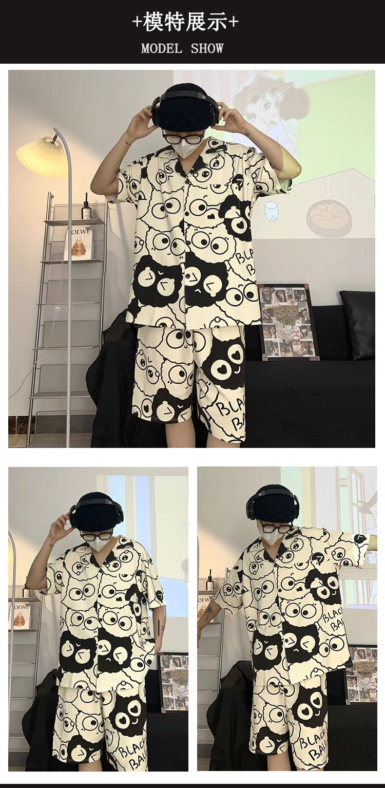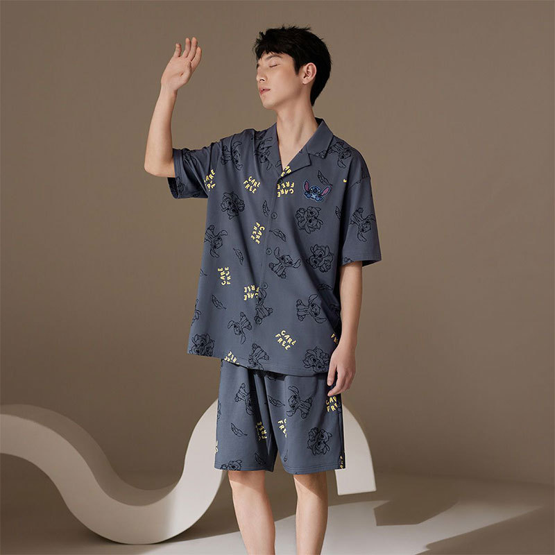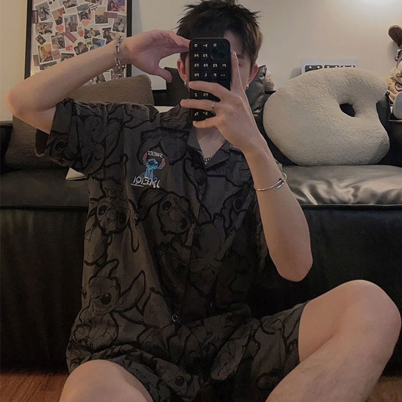 남성용 잠옷 2026년 여름 신상품 반팔 얇은 캐주얼 루즈핏 대형 사이즈 스누피 세트 학생 홈웨어스토어 가기