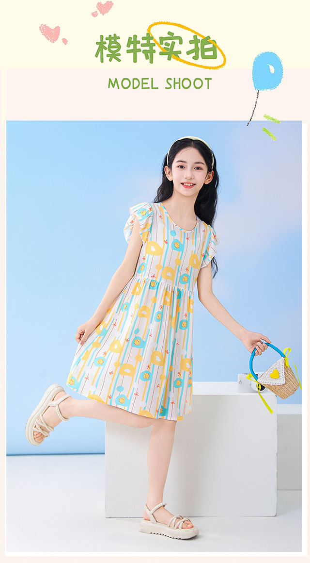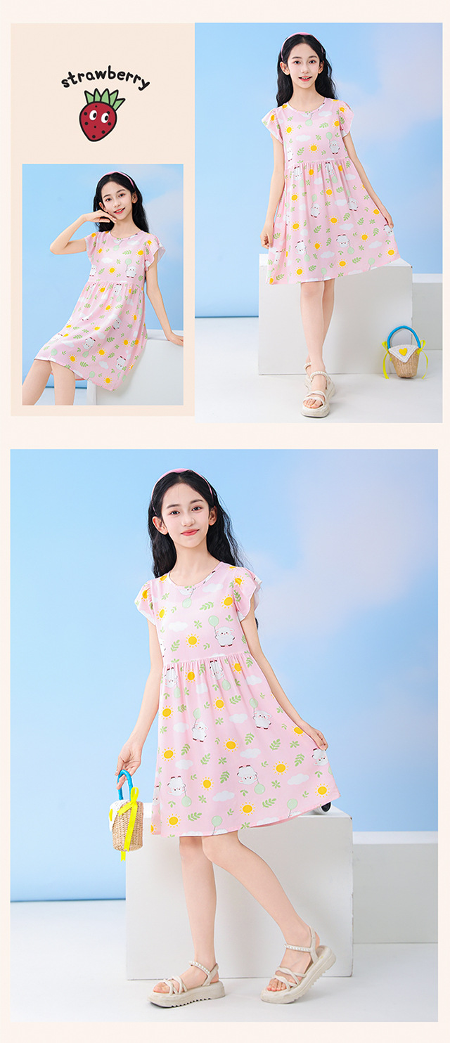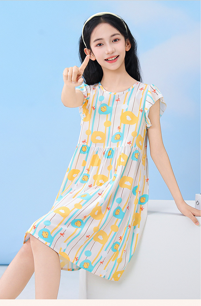 여름 어린이 소녀의 공주 치마 공주 스타일 플라잉 슬리브 원피스 꽃 요정 스커트 얇은 인쇄 나이트 가운 면화 실크