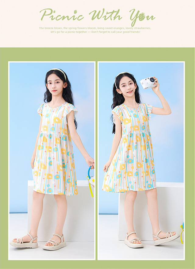 여름 어린이 소녀의 공주 치마 공주 스타일 플라잉 슬리브 원피스 꽃 요정 스커트 얇은 인쇄 나이트 가운 면화 실크스토어 가기