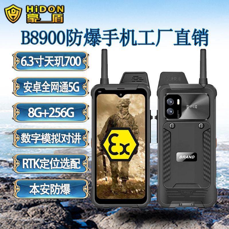 豪盾全网通5G智能防爆对讲机6.35寸八核安卓12,采用联发科MTK6833天玑700八核2.2GHz,采用电容式多点触摸,IPS FHD+ 2340*1080像素,8G运行内存+ 256G存储,DMR,数字+模拟对讲二合一;支持DMR硬件和PTT软件对讲,支持SOS紧急求助按键功能和NFC功能等,IP68防水防尘级别。内置距离传感器、加速度传感器、光感节能器、地磁传感器等传感器。防爆标准:Ex ib IIC T4/Ex Gb/Ex ibD21 T130度 IP68,产品标准:Q/YS01-2020,可选! 性价比超高!