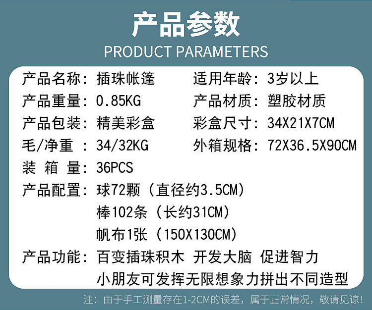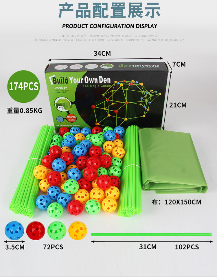 캐슬 마스터 어린이 빛나는 건물 블록 장난감 구슬 텐트 게임 실내 및 실외 베이비 빌딩 하우스 모델링