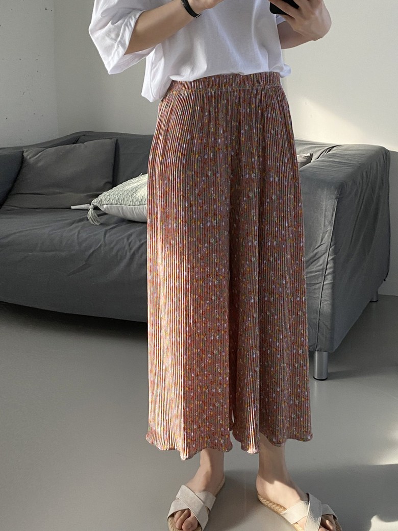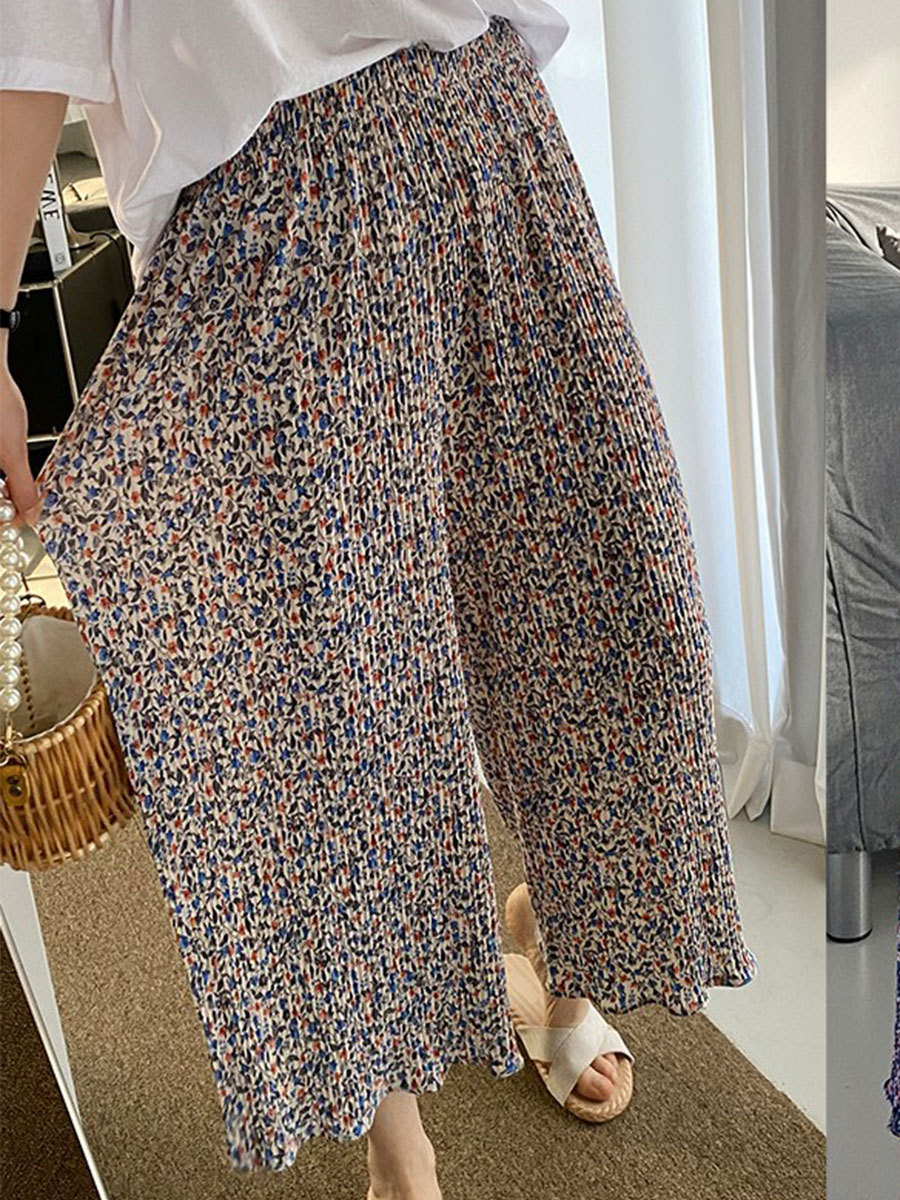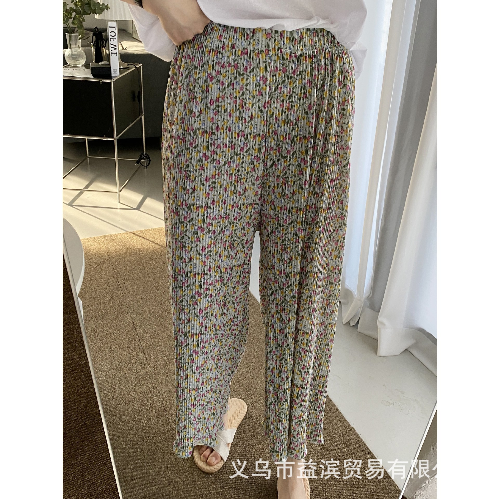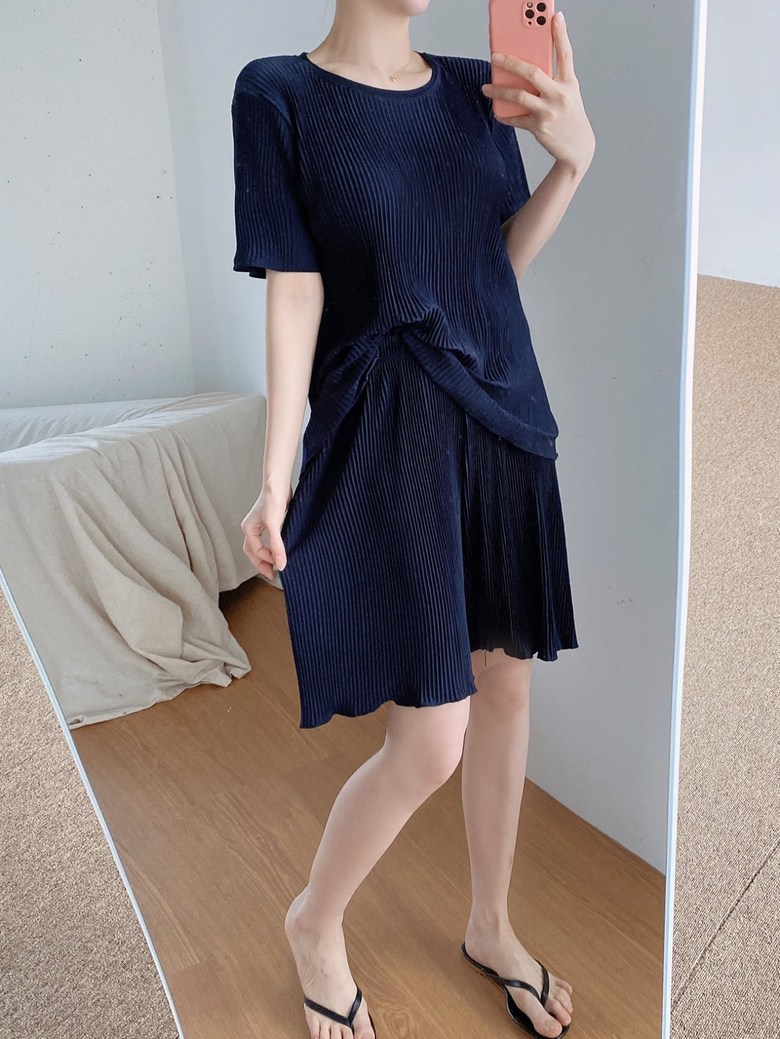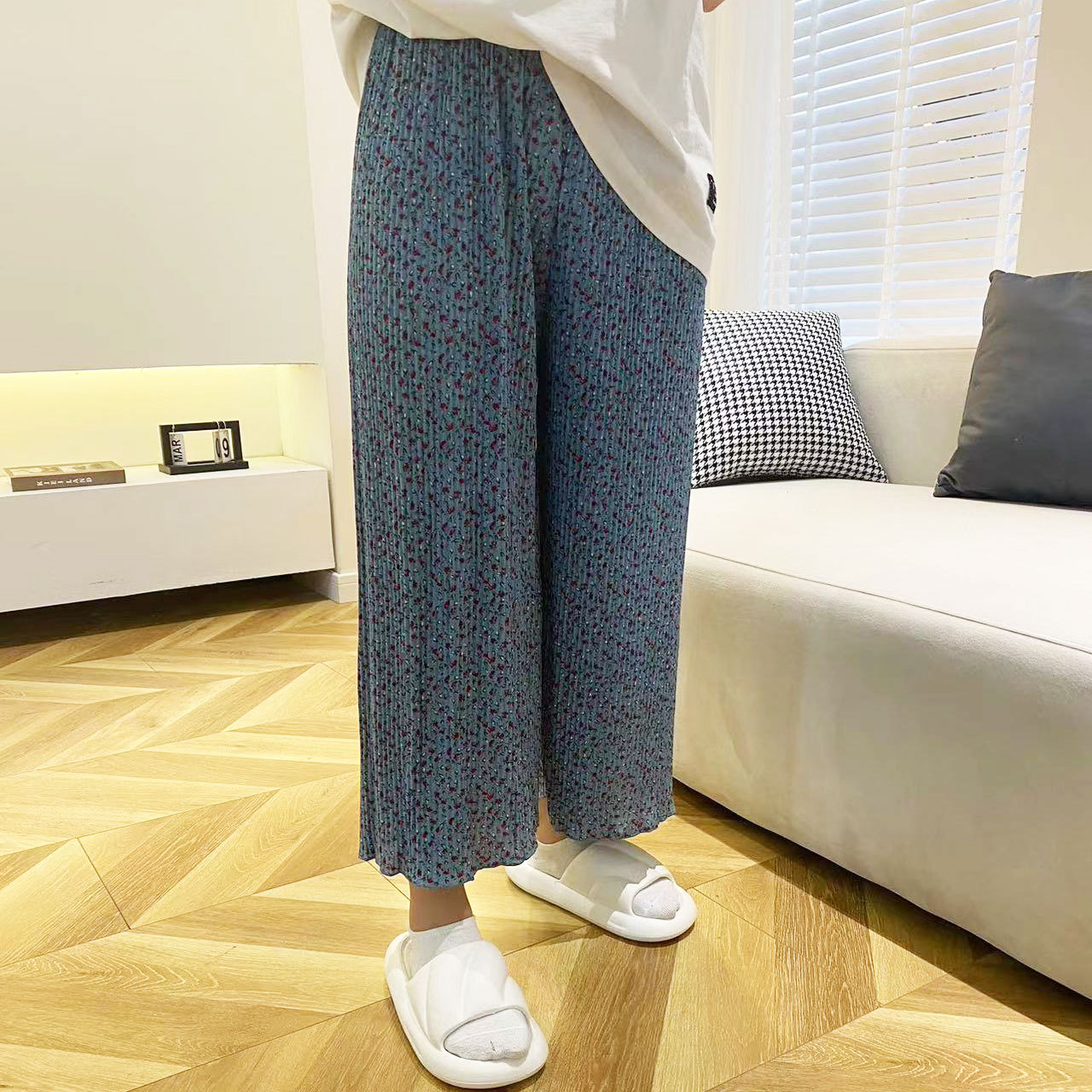 여름 신작 라운드 넥 반팔 탑, 5부 팬츠, 루즈하고 편안한 꽃무늬 주름진 시원한 파자마 세트, 여성이 밖에서 입는다스토어 가기