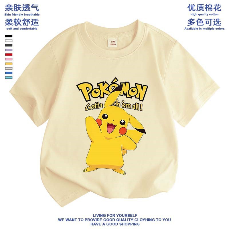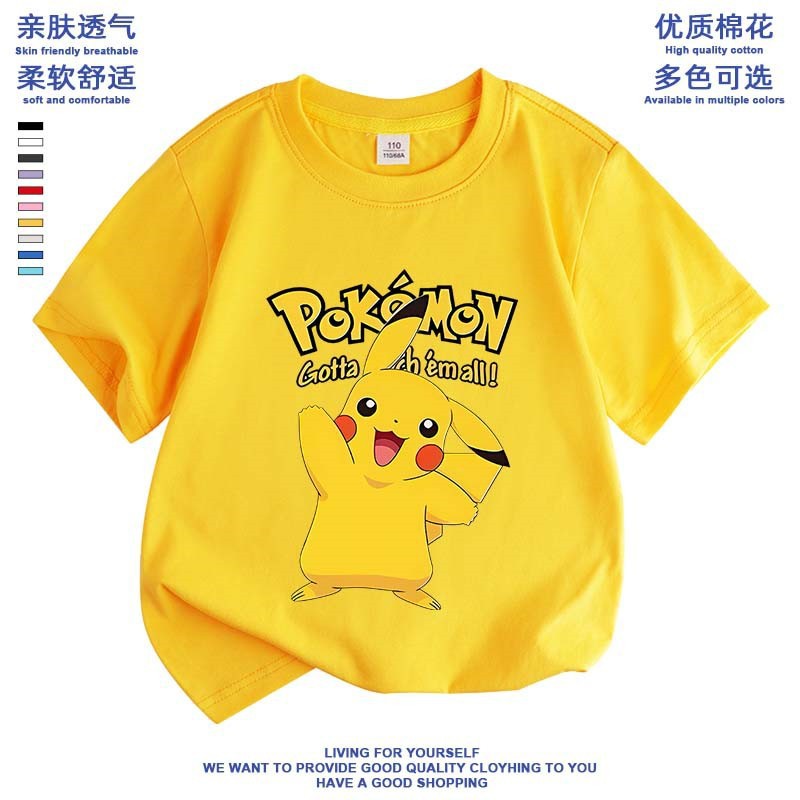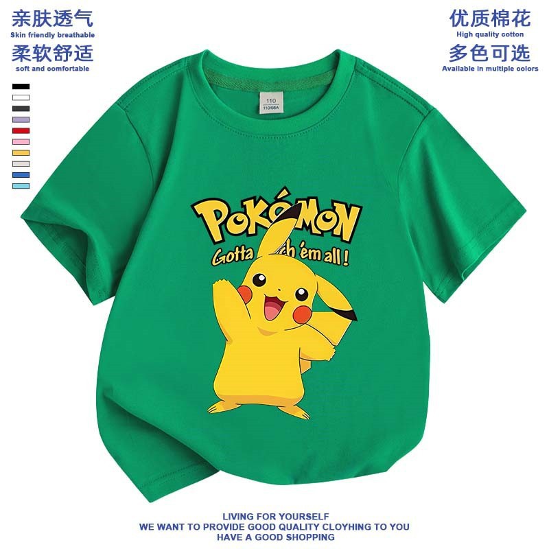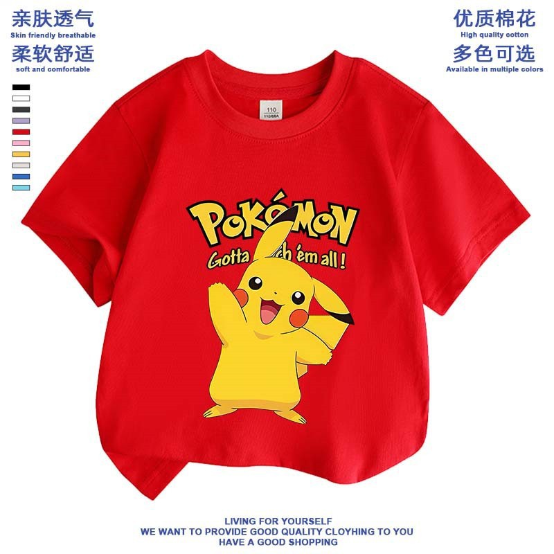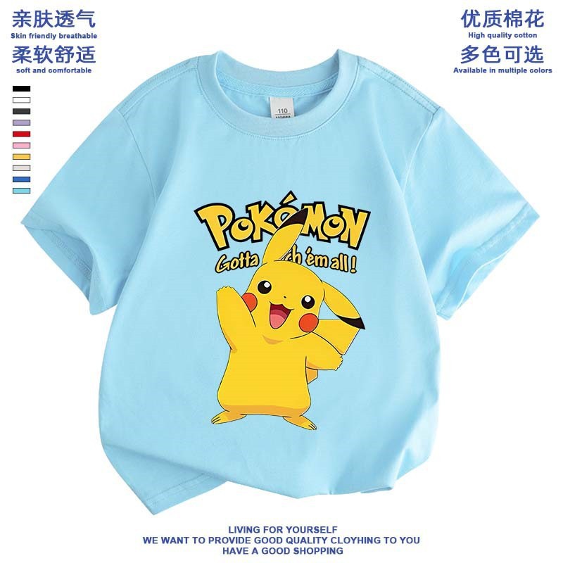 여름 피카추 소년 소녀 반팔 새 도착 포켓몬 면 탑 올 매치 포켓몬베이스 셔츠스토어 가기