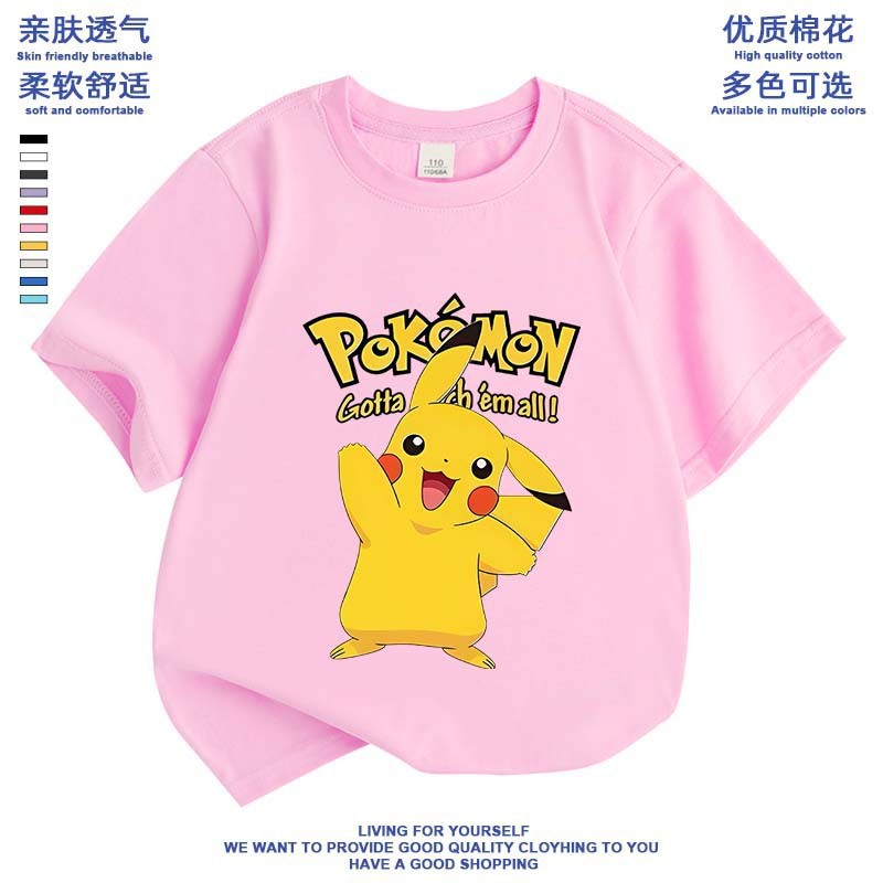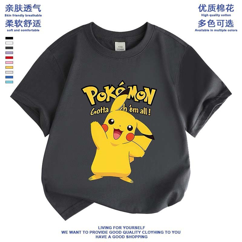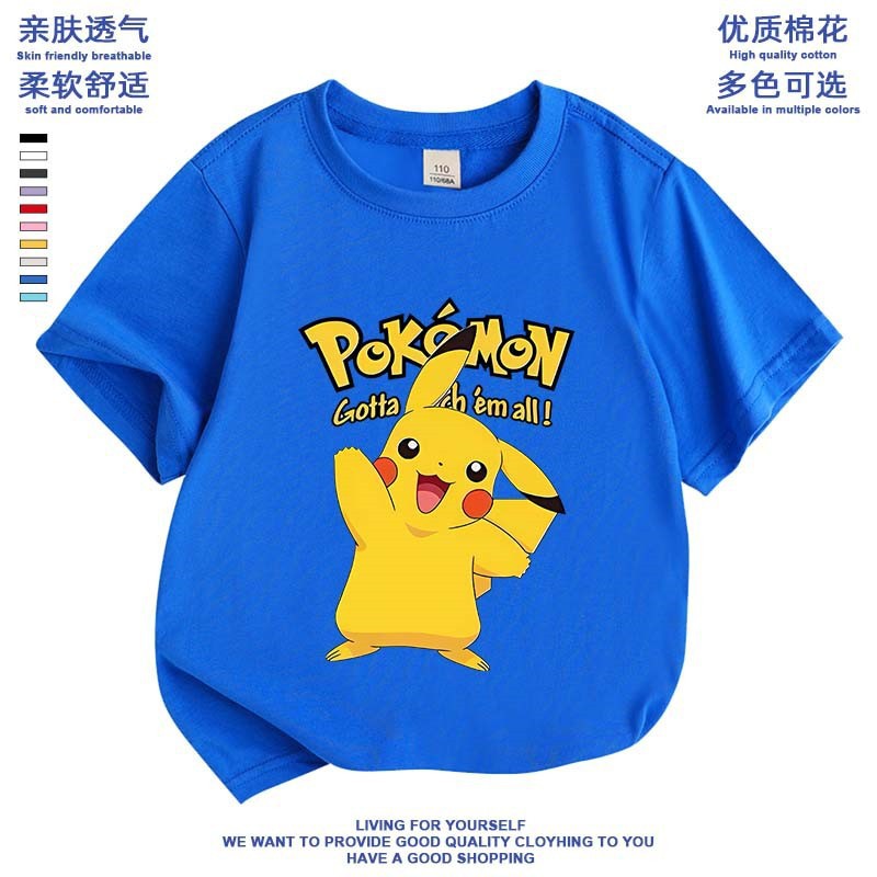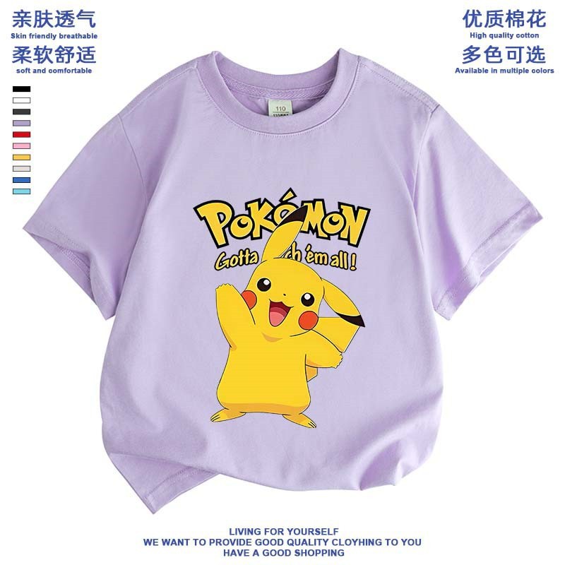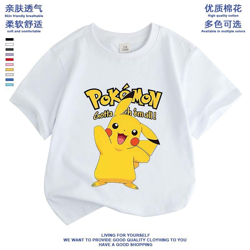여름 피카추 소년 소녀 반팔 새 도착 포켓몬 면 탑 올 매치 포켓몬베이스 셔츠스토어 가기