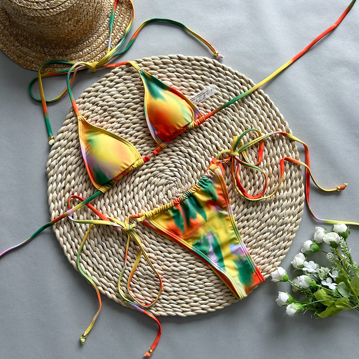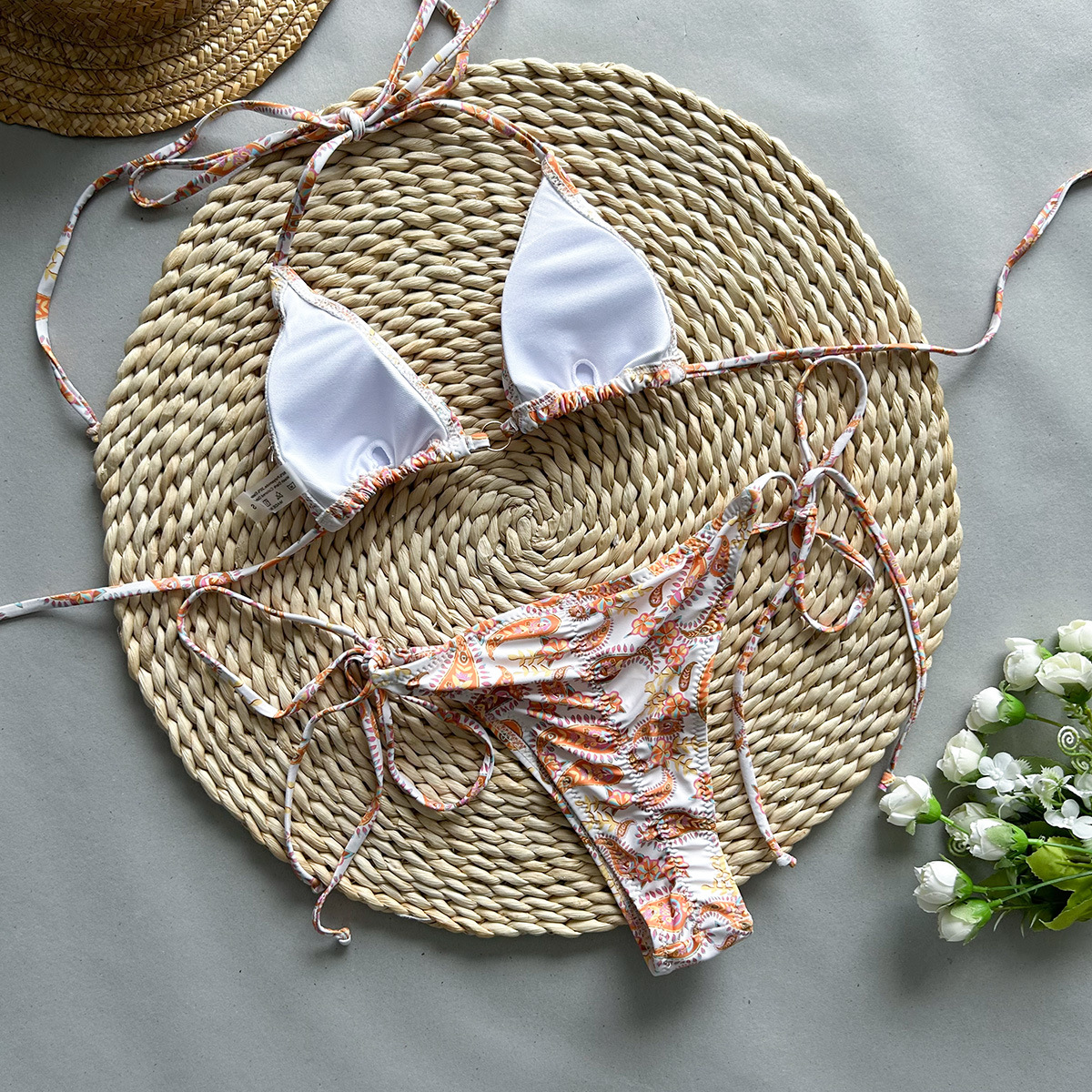 2024 새로운 비키니 유럽과 미국의 섹시한 비키니 국경 무역 유럽과 미국의 인쇄 레이스 업 분할 여성 수영복
