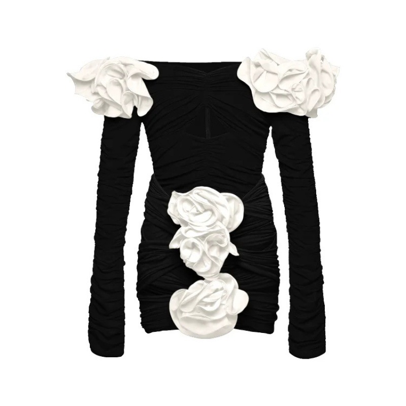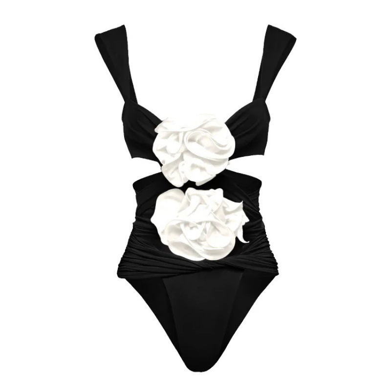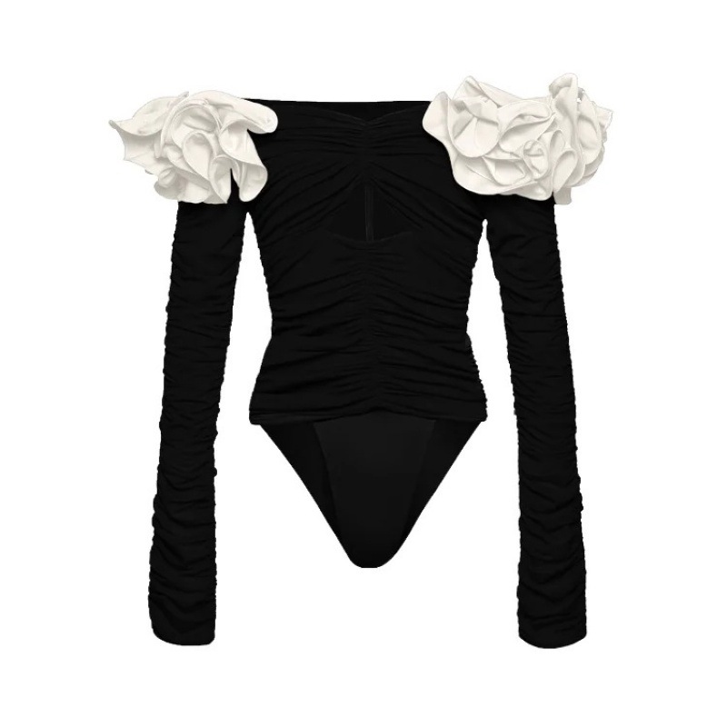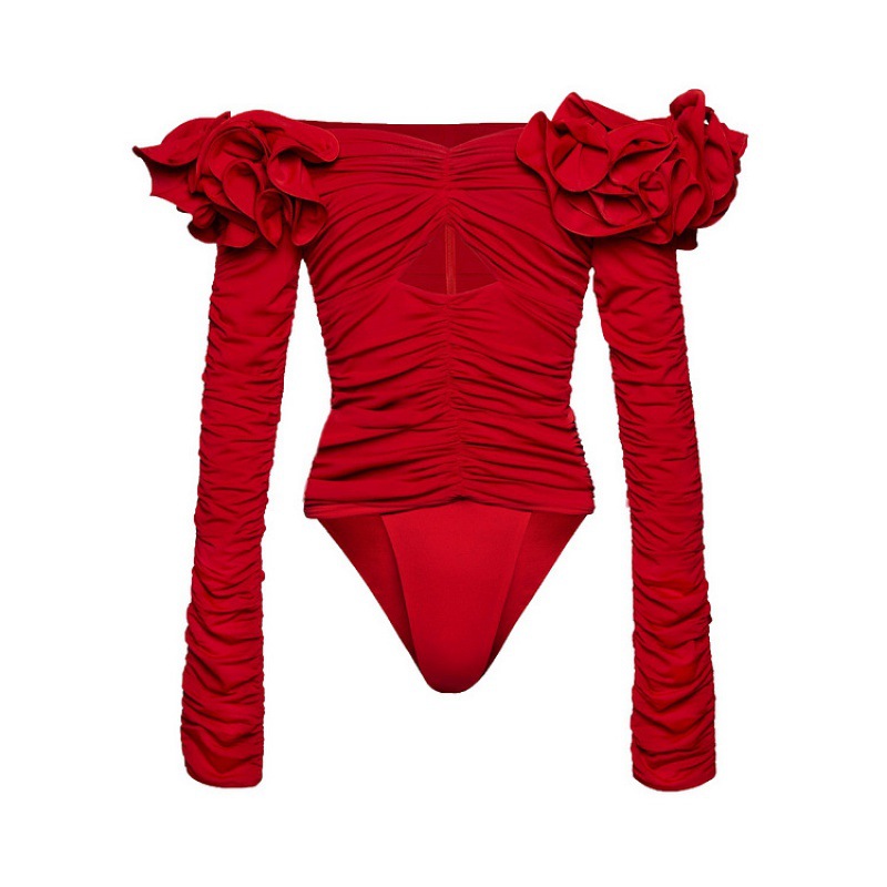 2024 국경 폭발 수영복 여성 3 차원 꽃 장식 긴팔 튜브 탑 솔리드 컬러 수영복 세트