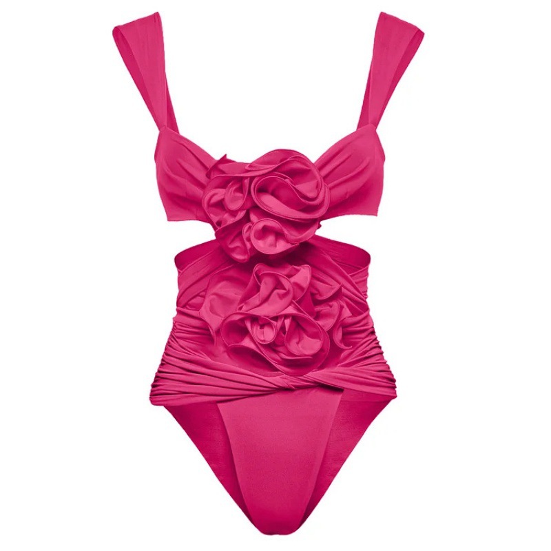2024 국경 폭발 수영복 여성 3 차원 꽃 장식 긴팔 튜브 탑 솔리드 컬러 수영복 세트스토어 가기