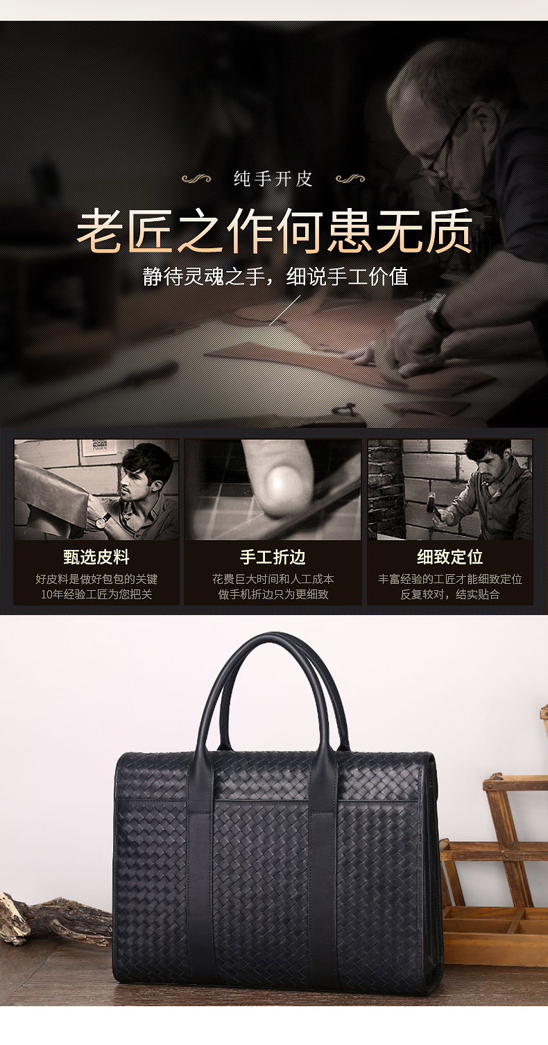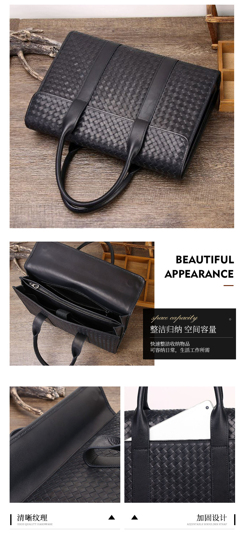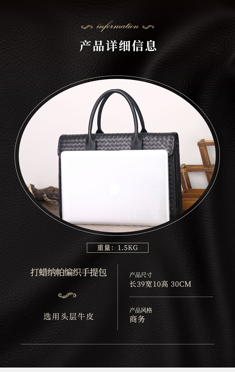 손으로 짠 비즈니스 서류 가방, 1층 소가죽 남성용 핸드백, 대용량 고급 가죽 컴퓨터 가방