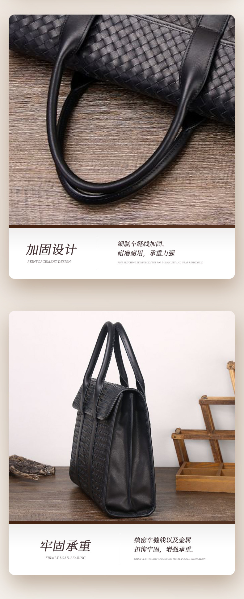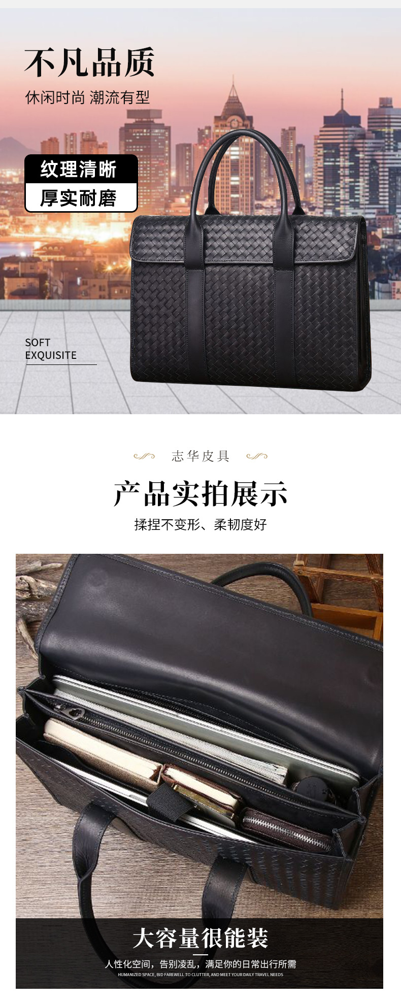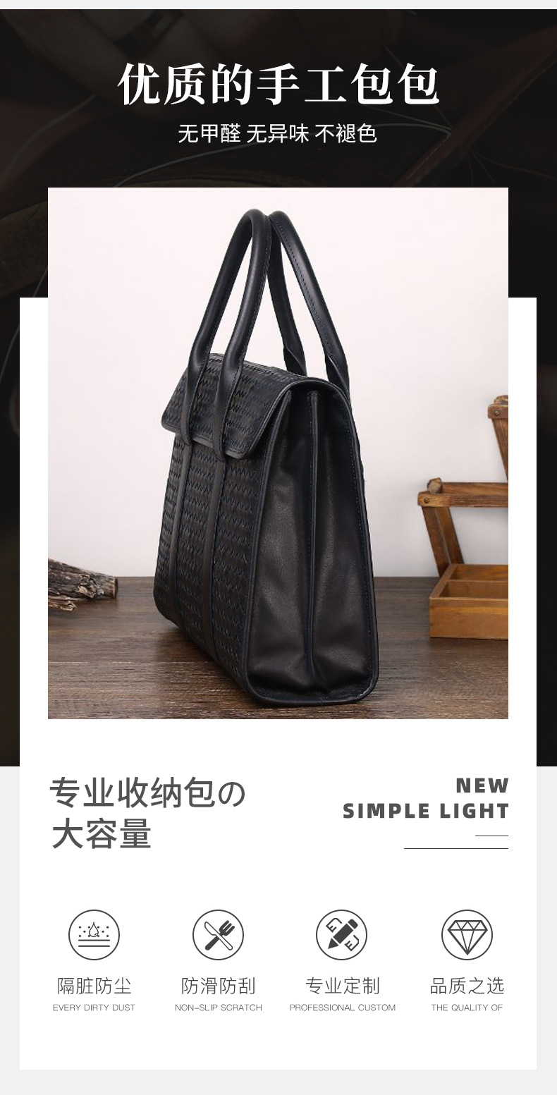 손으로 짠 비즈니스 서류 가방, 1층 소가죽 남성용 핸드백, 대용량 고급 가죽 컴퓨터 가방