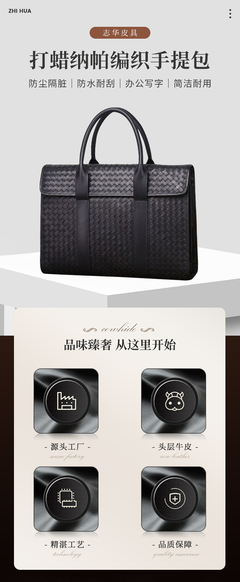 손으로 짠 비즈니스 서류 가방, 1층 소가죽 남성용 핸드백, 대용량 고급 가죽 컴퓨터 가방스토어 가기