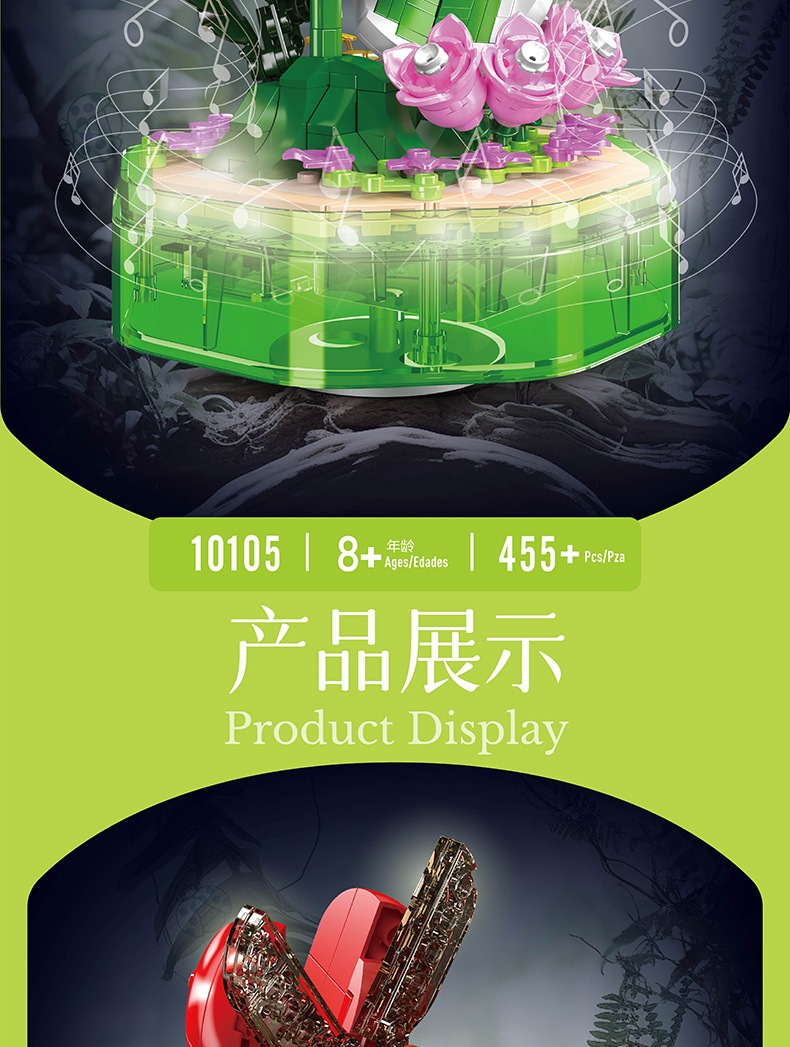 유싱 크리에이티브 라이트 뮤직 박스 10105 세븐 스타 Coccinella 8 뮤직 박스 소년과 소녀 장난감 퍼즐 빌딩 블록