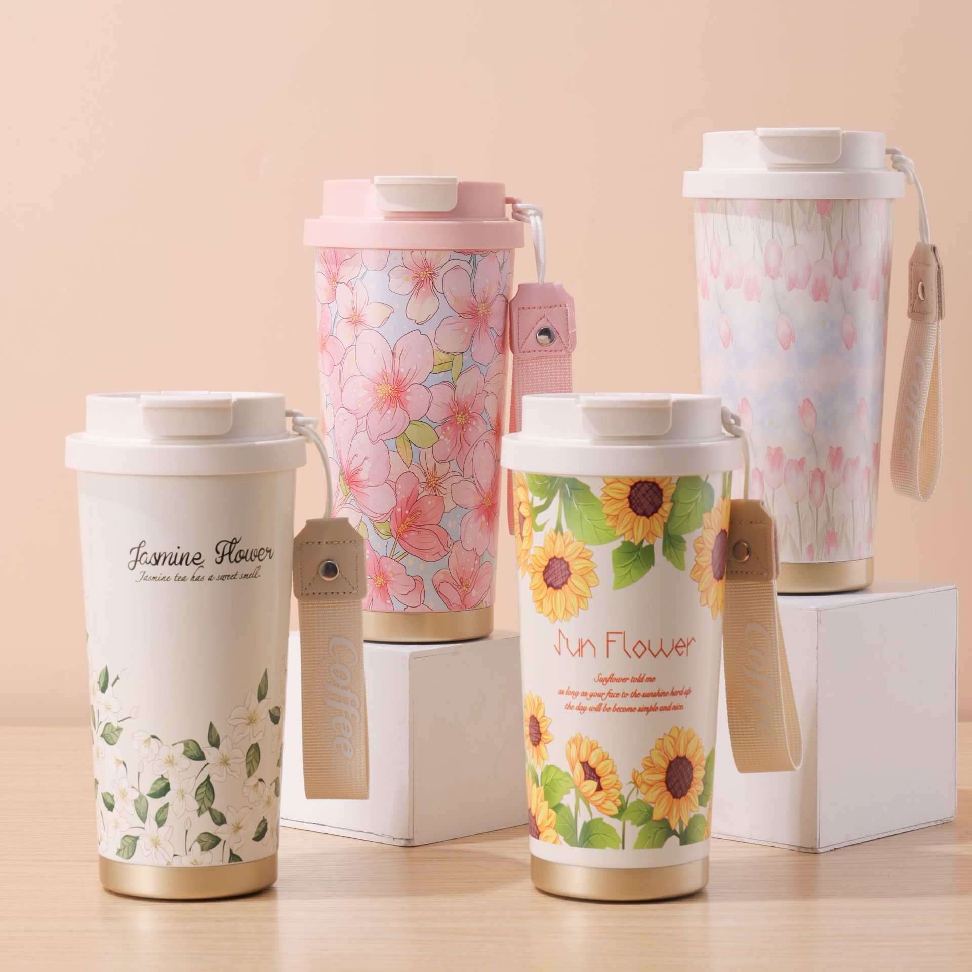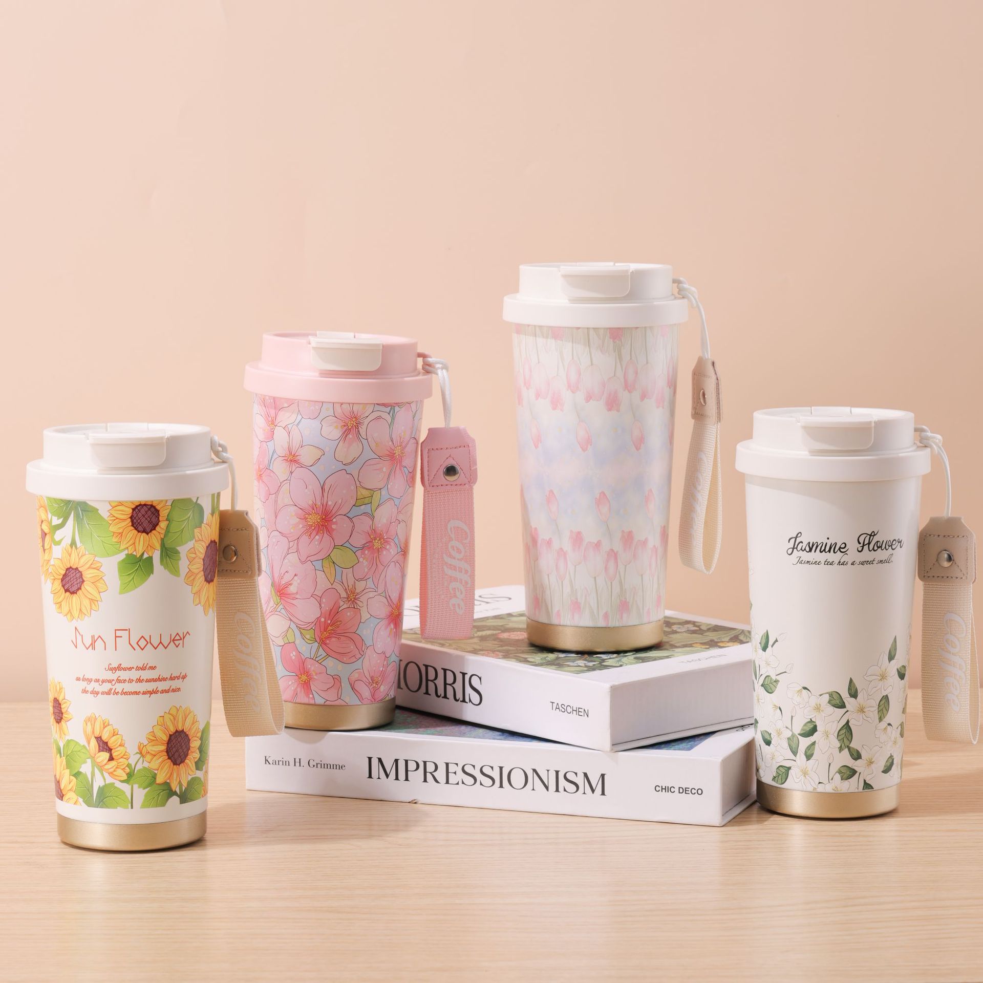 높은 가치의 릴리 인 더 밸리 커피 컵 316 스테인레스 스틸 보온병 컵 휴대용 핸들 더블 마시는 컵 가벼운 고급 고급 느낌스토어 가기