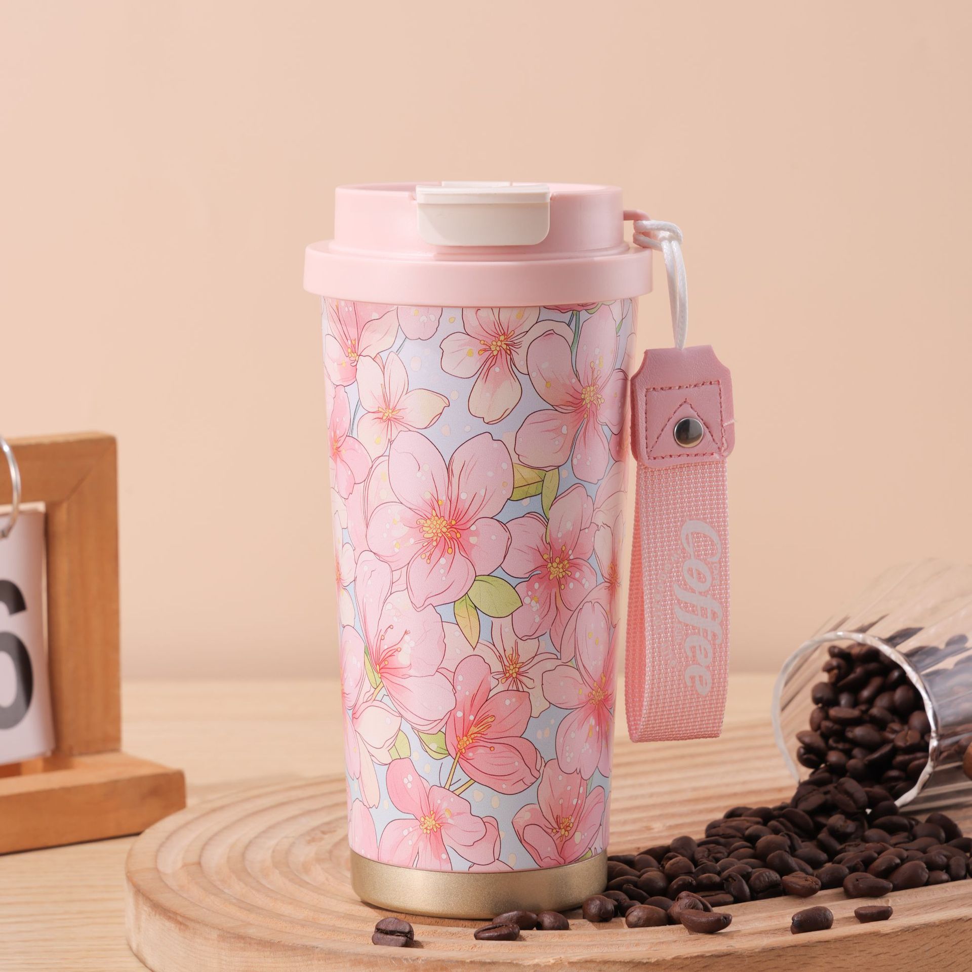 높은 가치의 릴리 인 더 밸리 커피 컵 316 스테인레스 스틸 보온병 컵 휴대용 핸들 더블 마시는 컵 가벼운 고급 고급 느낌