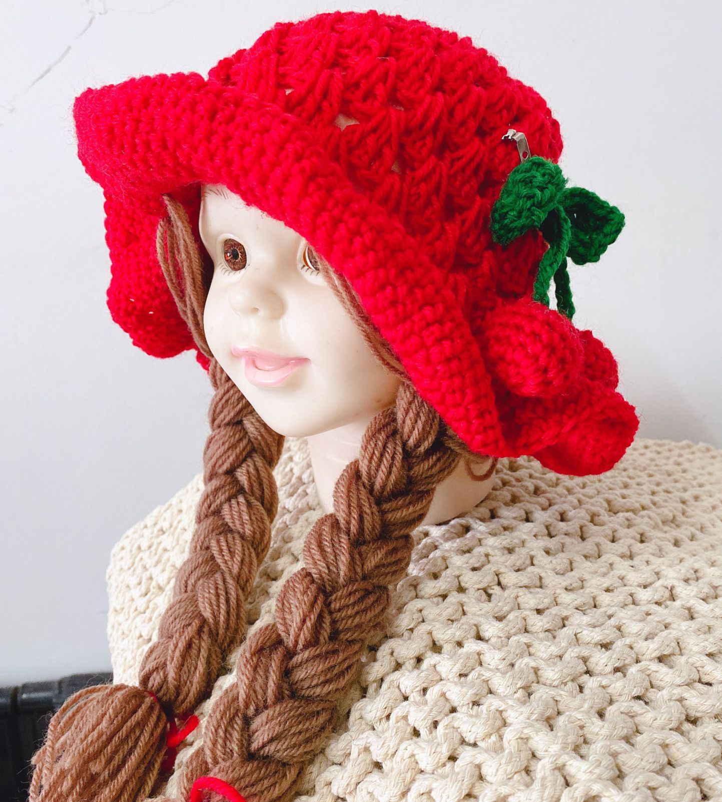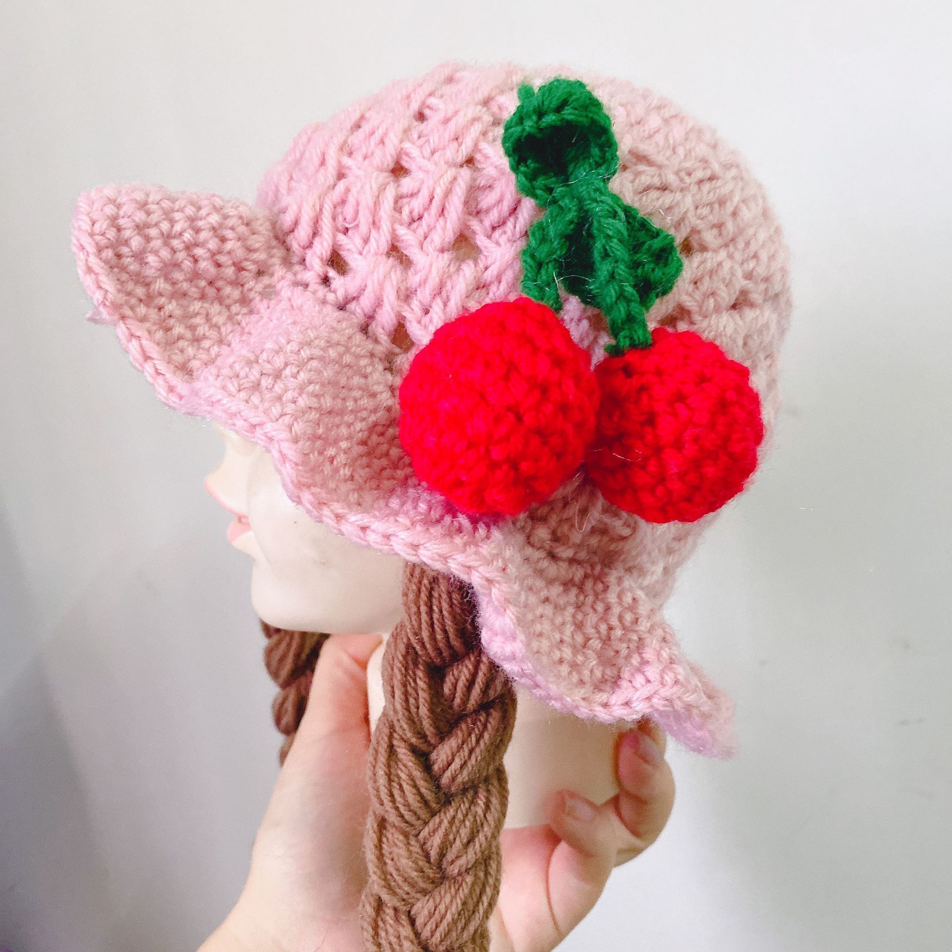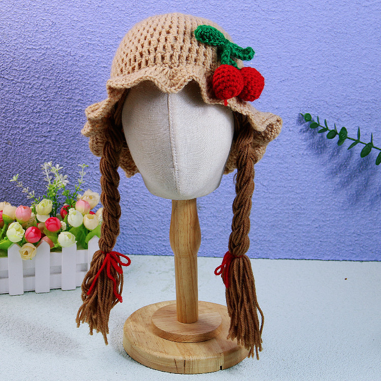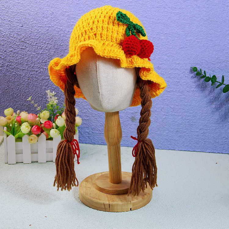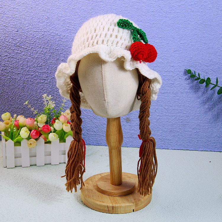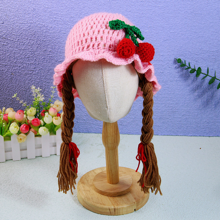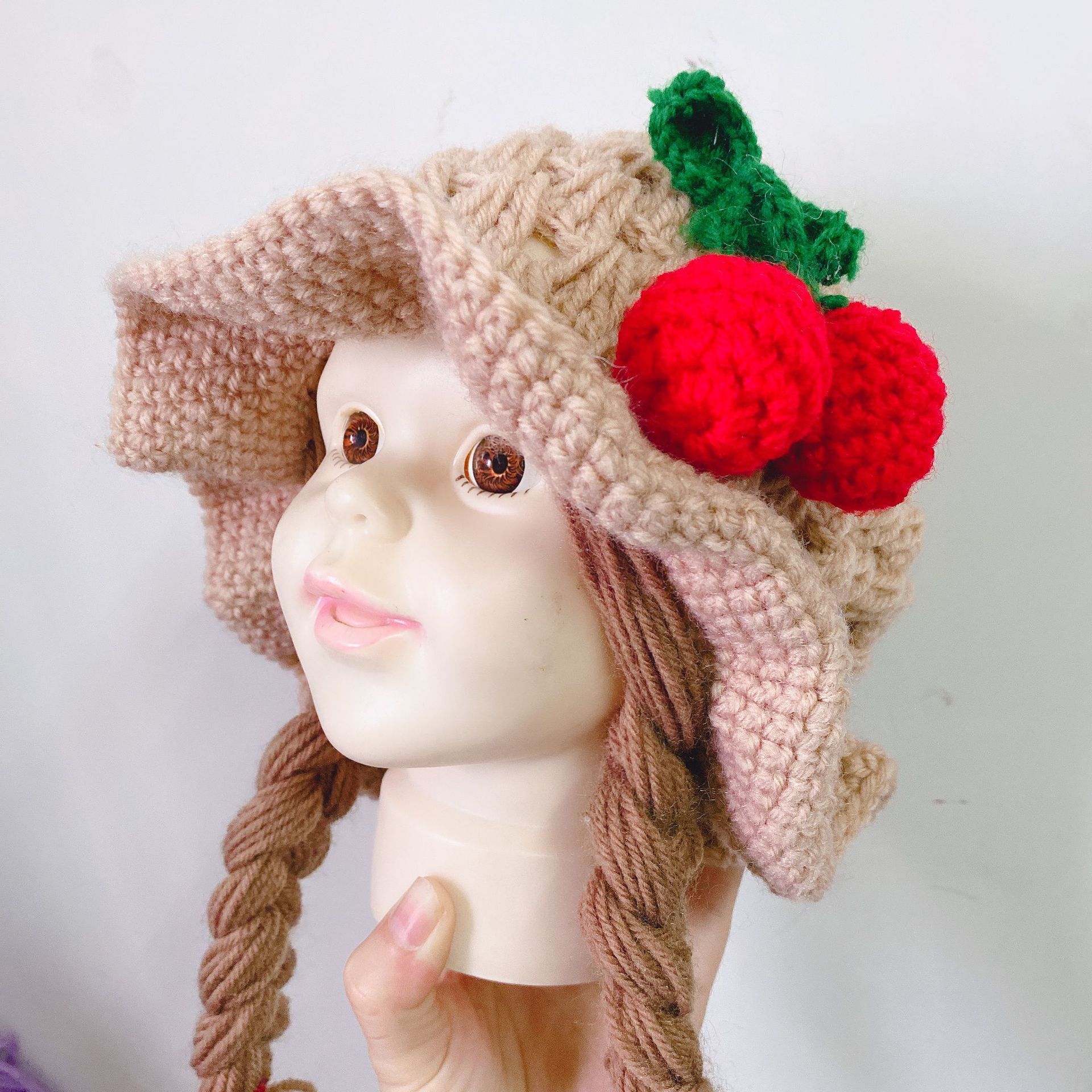 INS 새로운 한국어 버전의 체리 모자 귀여운 어린이 창조적 인 손 니트 사진 목가적 인 아기 머리띠 모자 도매스토어 가기