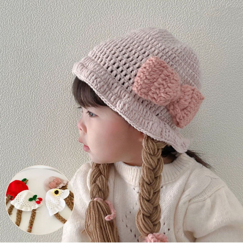 INS 새로운 한국어 버전의 체리 모자 귀여운 어린이 창조적 인 손 니트 사진 목가적 인 아기 머리띠 모자 도매