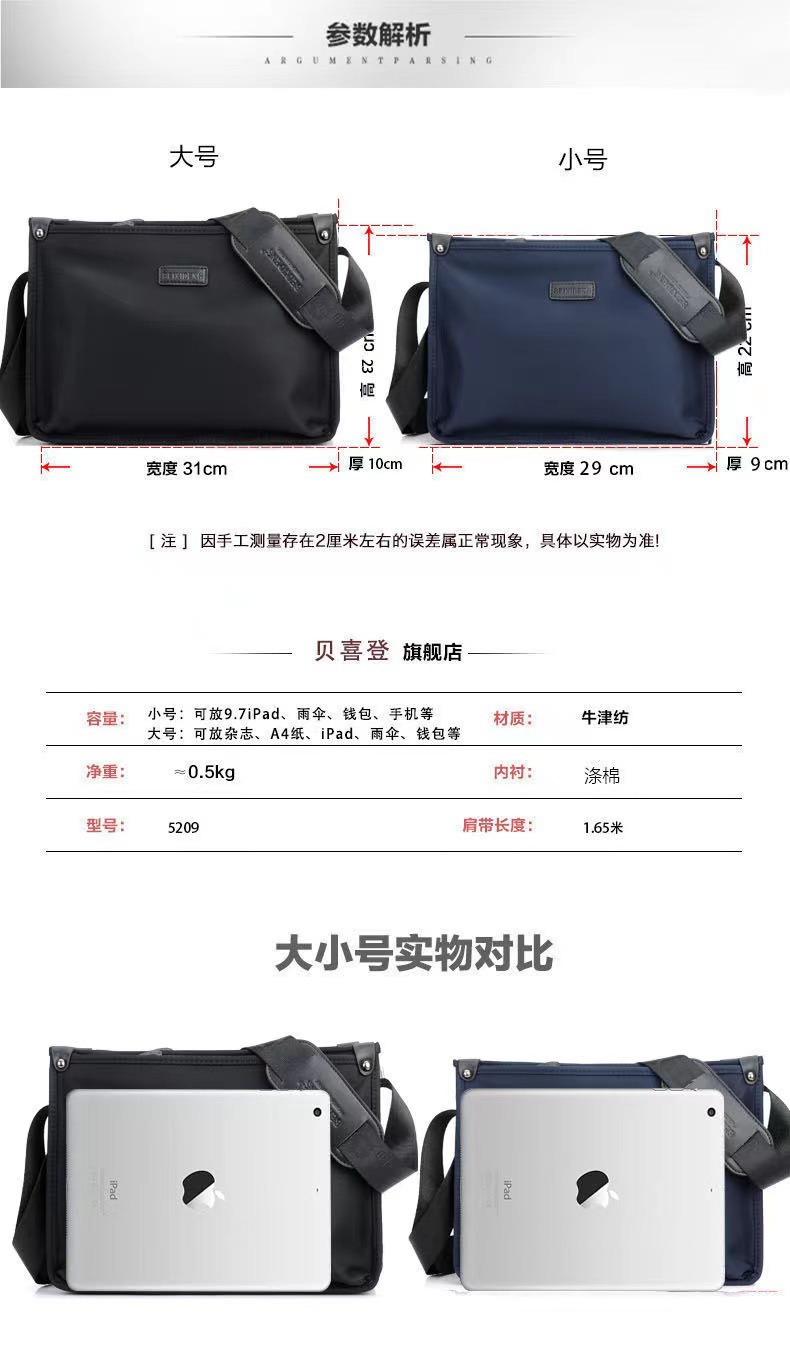 맞춤형 한국식 옥스포드 섬유 남성용 가방 숄더백 캐주얼 남성용 크로스 바디 백 대용량 트렌디 가로 남성용 가방