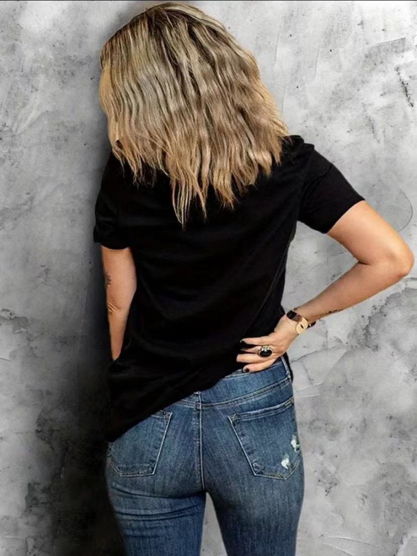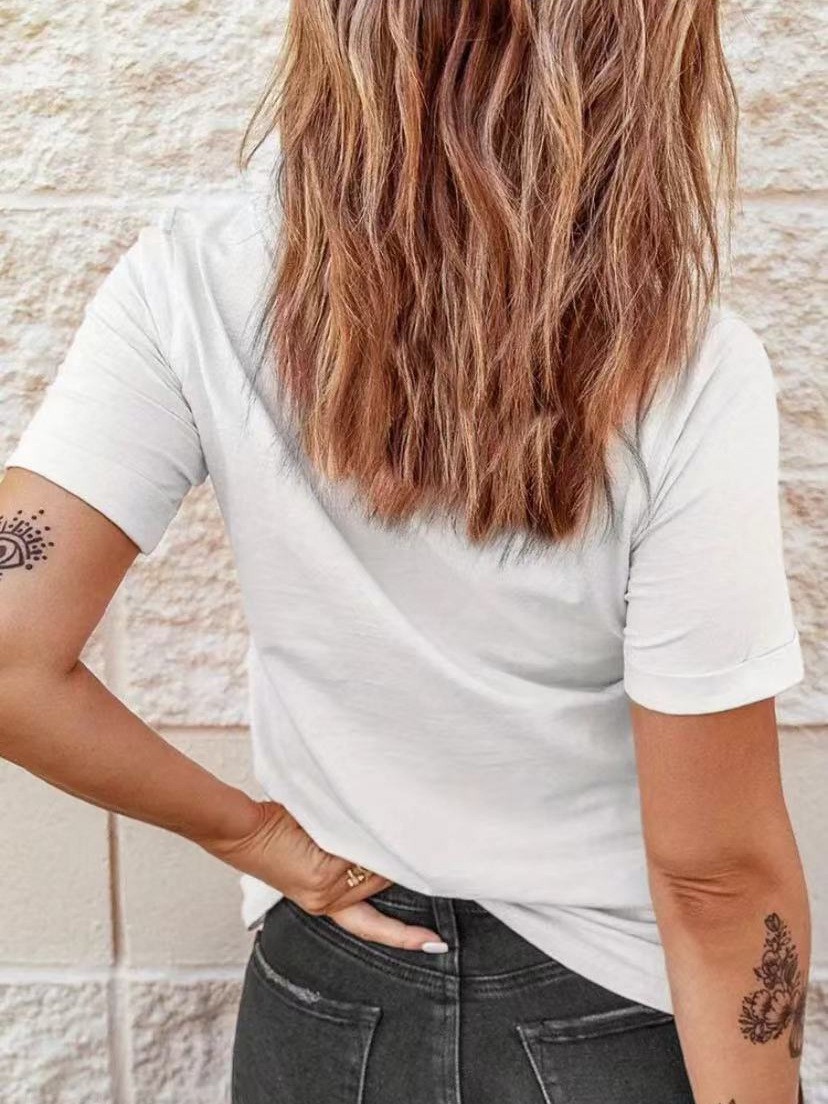 2024 국경 반팔 티셔츠 유럽과 미국 여름 새로운 여성 패션 캐주얼 홈 통근 올 매치 라운드 넥 반팔 티셔츠스토어 가기