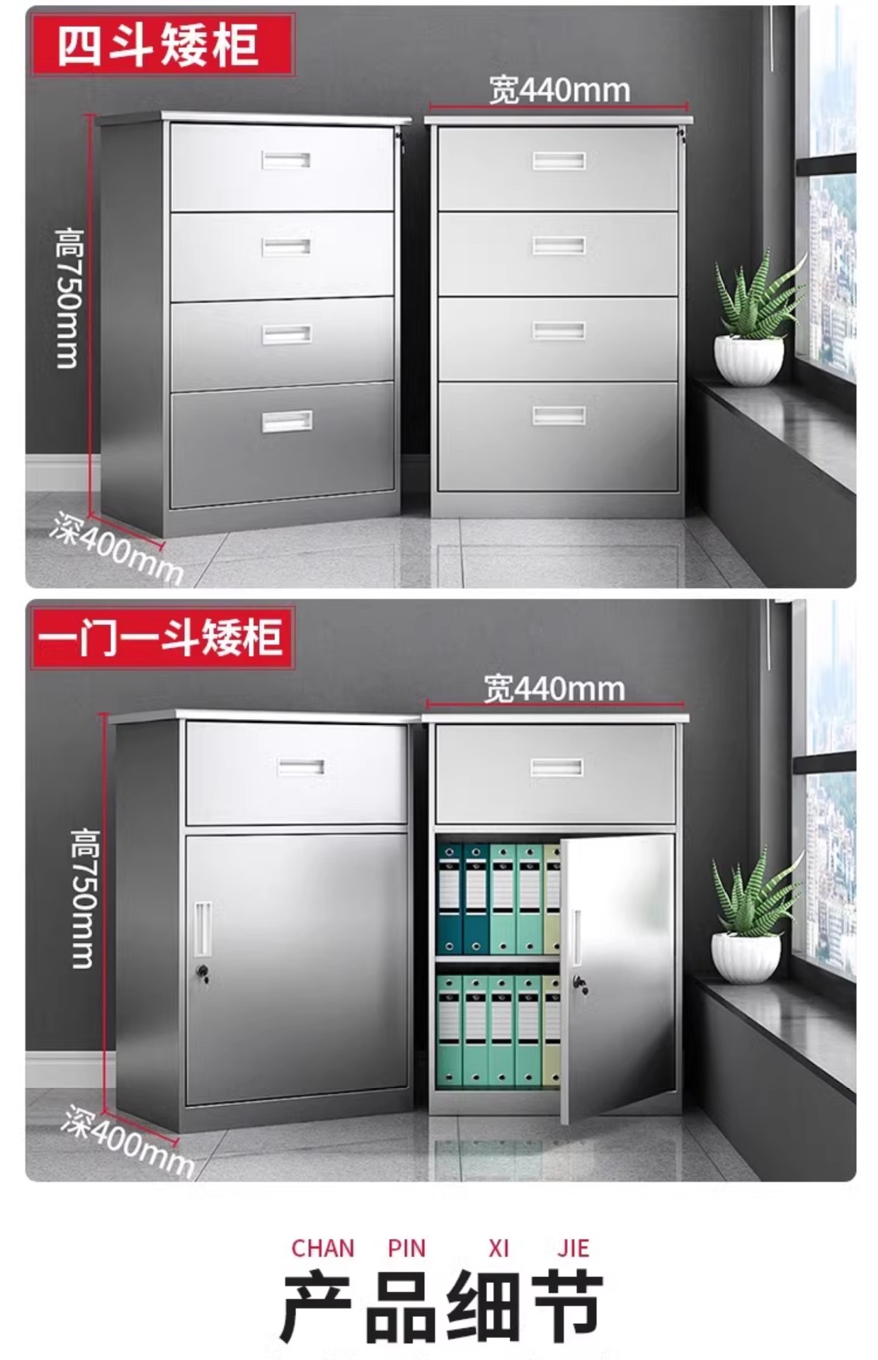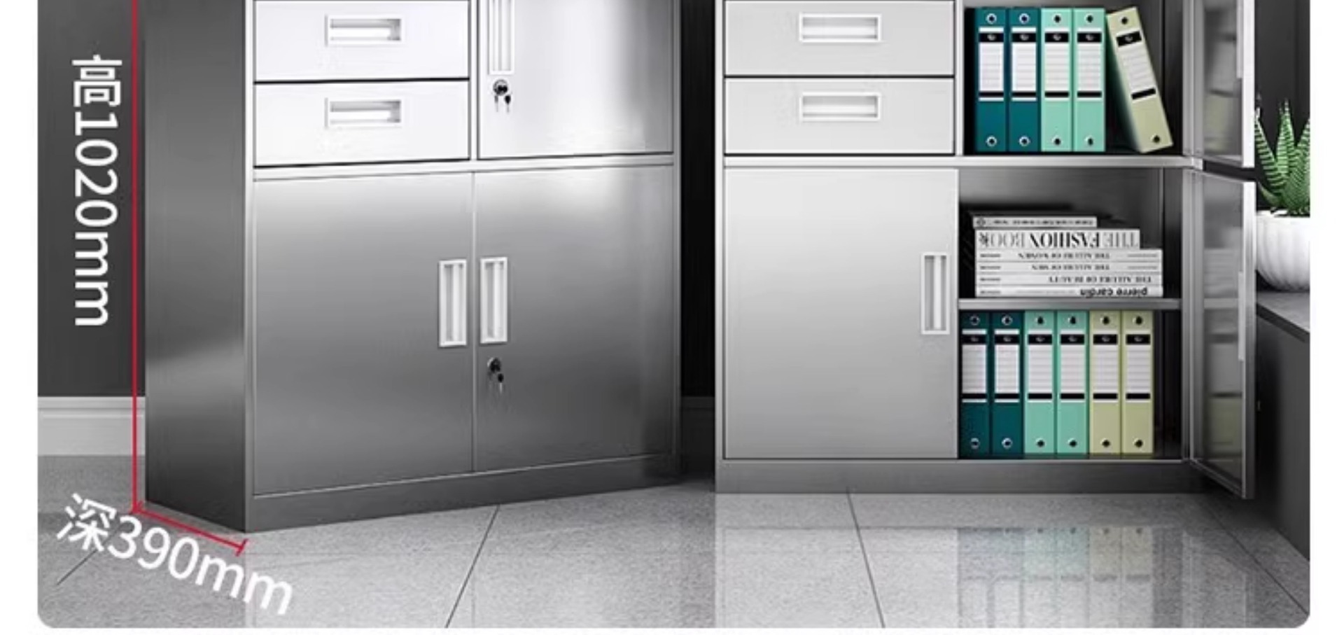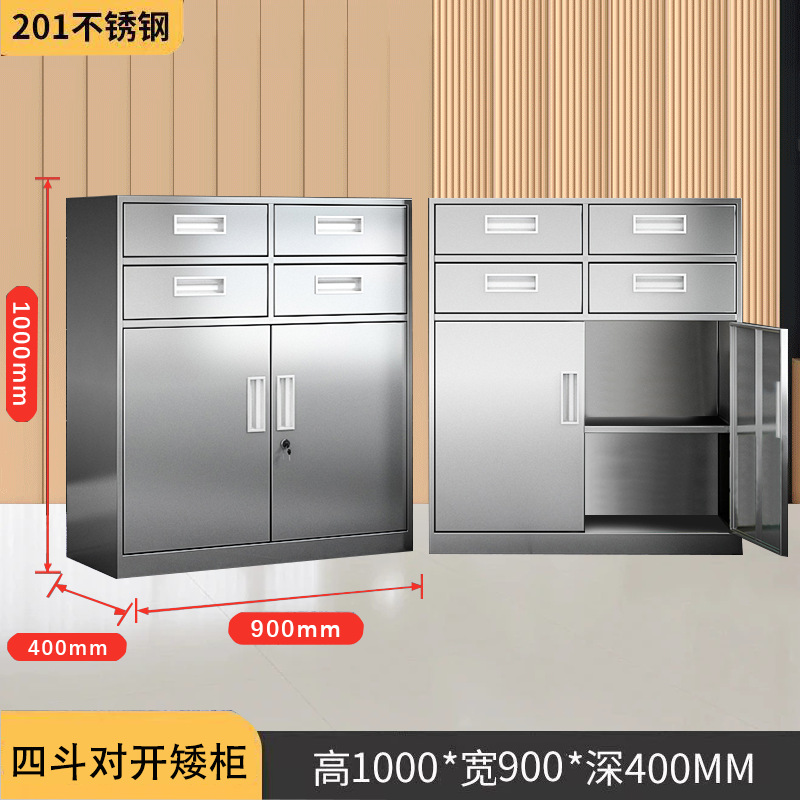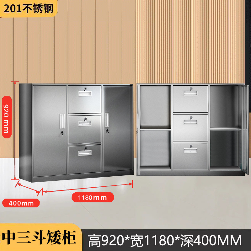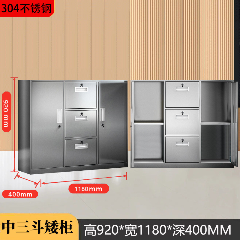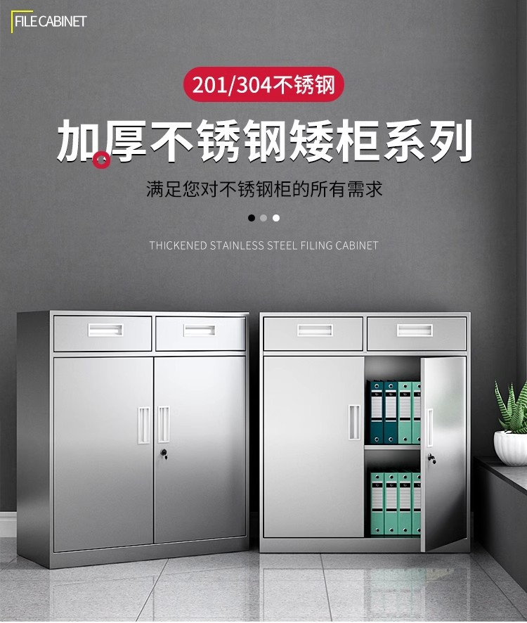 304不锈钢矮柜文件柜储物柜带锁活动柜阳台整理收纳柜床头柜厂家